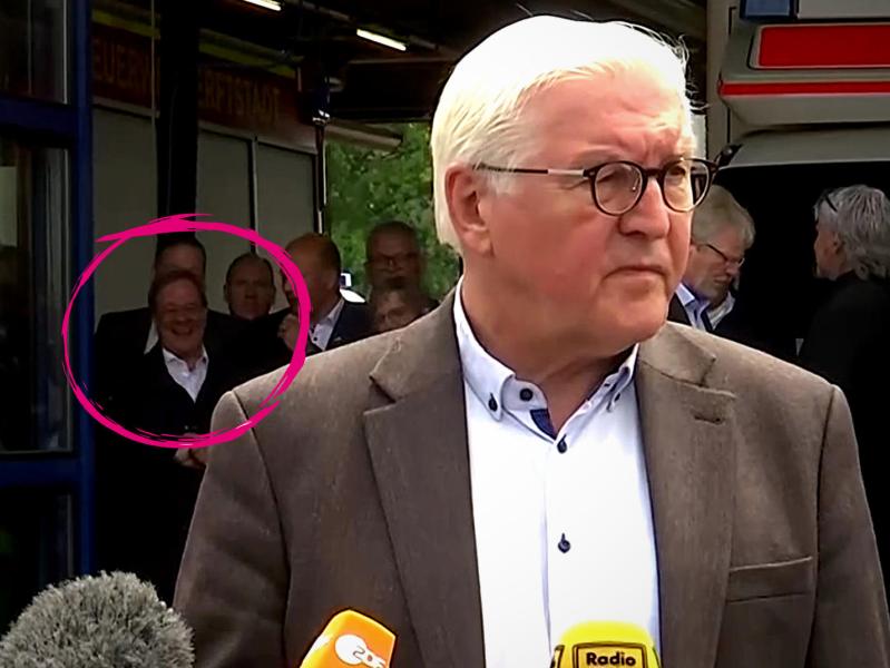 Ιδιαίτερα δυσμενή σχόλια έχει προκαλέσει η συμπεριφορά του Πρωθυπουργού της Βόρειας Ρηνανίας – Βεστφαλίας ‘Αρμιν Λάσετ, ο οποίος εμφανίζεται σε βίντεο να γελάει, ενώ ο Ομοσπονδιακός Πρόεδρος Φρανκ-Βάλτερ Σταϊνμάιερ εκφράζει τη θλίψη του για την απώλεια ανθρώπινων ζωών και τις καταστροφές στην περιοχή.