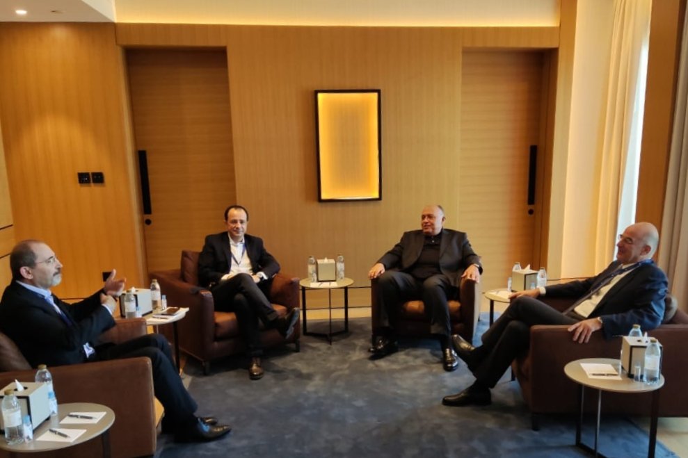Συναντήθηκα σε εγκάρδιο κλίμα στο Ντουμπάι με τους ΥΠΕΞ της Αιγύπτου, S. Shoukry, της Ιορδανίας, Α. Safadi και της Κύπρου @Christodulides. Στο επίκεντρο της συζήτησης, η σταθερότητα στην περιοχή και η πολυμερής συνεργασία. #UAE #Dubai pic.twitter.com/1dOJRUMUvy