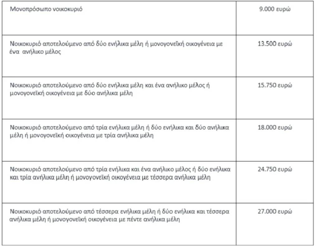 Δείτε τον πίνακα των καταναλωτών που δικαιούνται δικαστικής προστασίας με βάση το οικογενειακό εισόδημα: