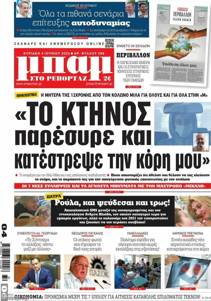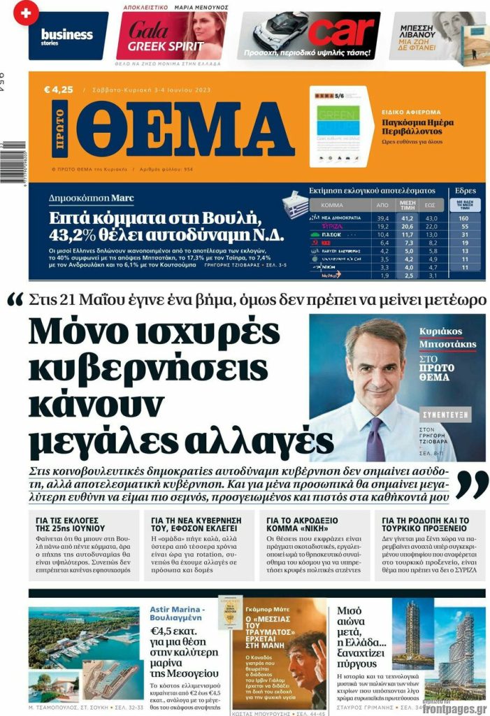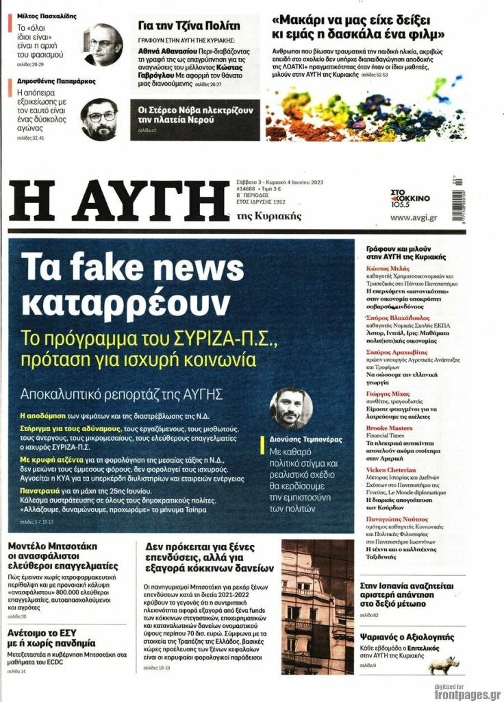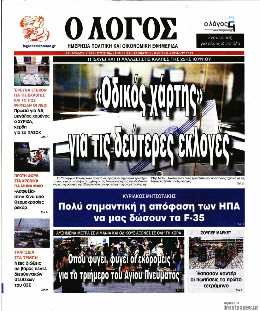 Διαβάστε τα πρωτοσέλιδα των σημερινών εφημερίδων