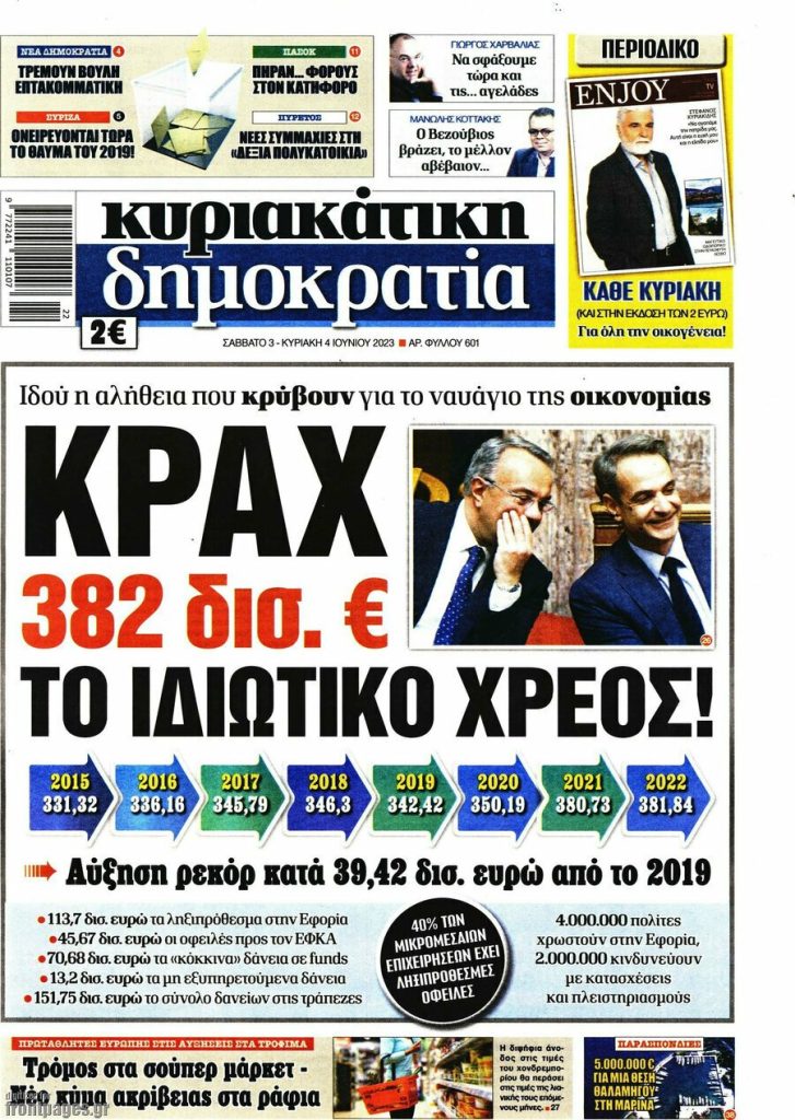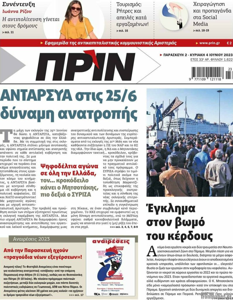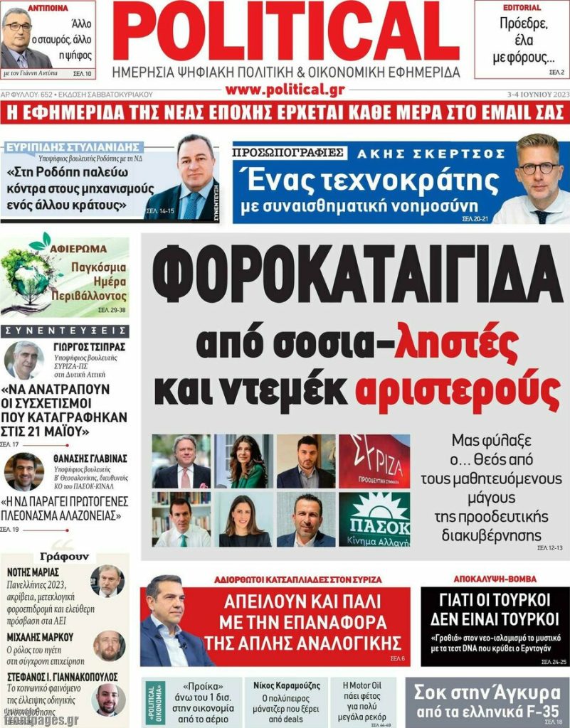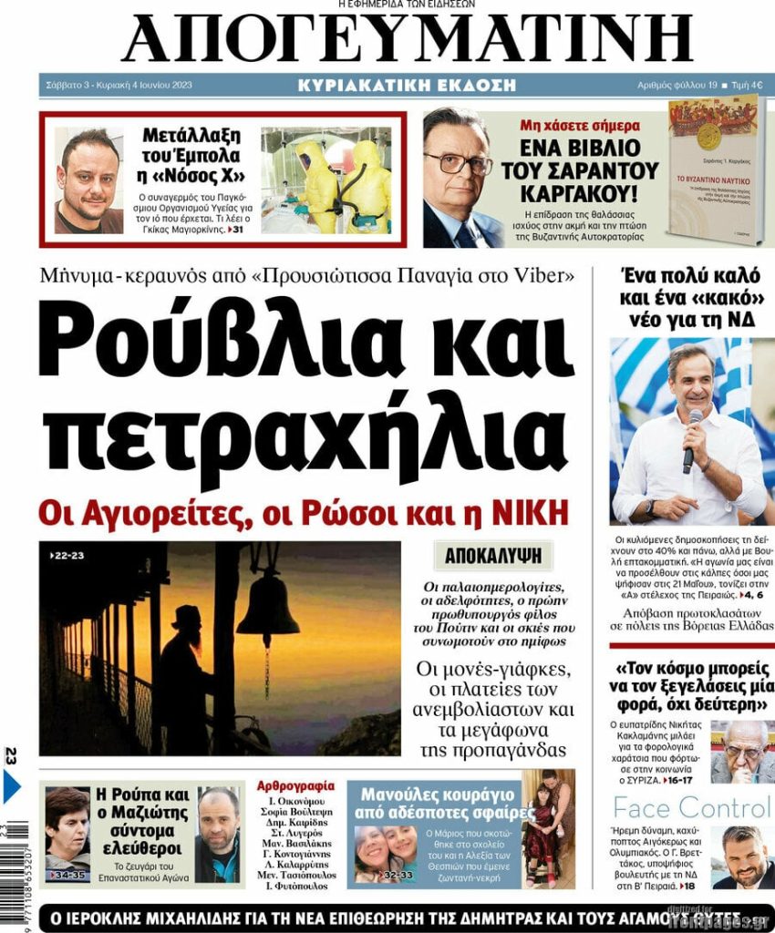 Διαβάστε τα πρωτοσέλιδα των σημερινών εφημερίδων