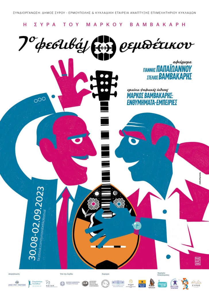 Το Φεστιβάλ Ρεμπέτικου «Η Σύρα του Μάρκου Βαμβακάρη», πιστό στο ραντεβού του, υποδέχεται για έβδομη χρονιά τους λάτρεις του είδους από την Ελλάδα και όλο τον κόσμο, στο διάστημα από 30 Αυγούστου έως 2 Σεπτεμβρίου 2023.