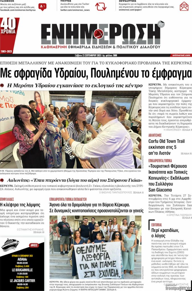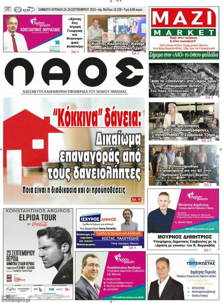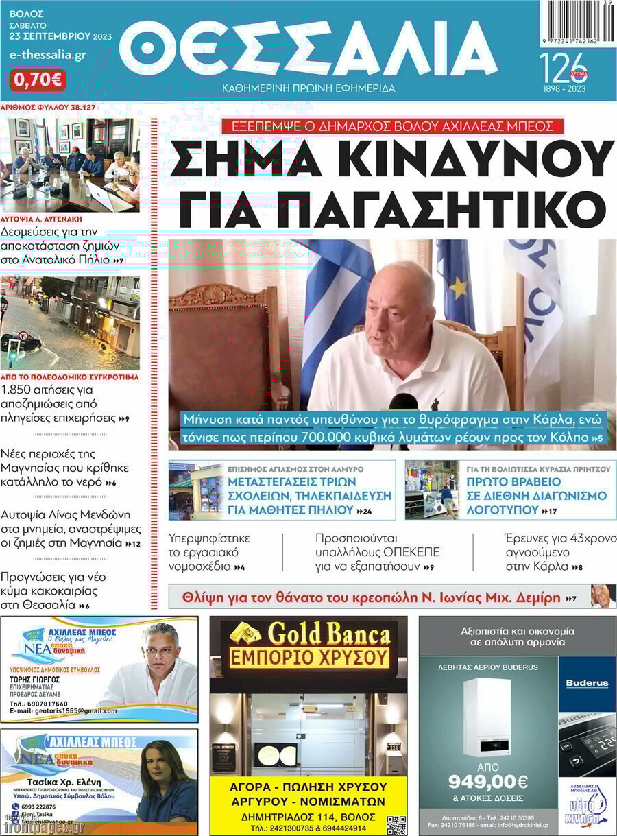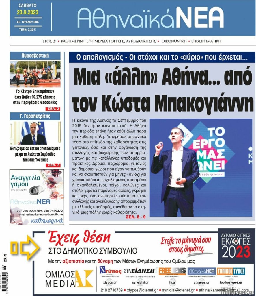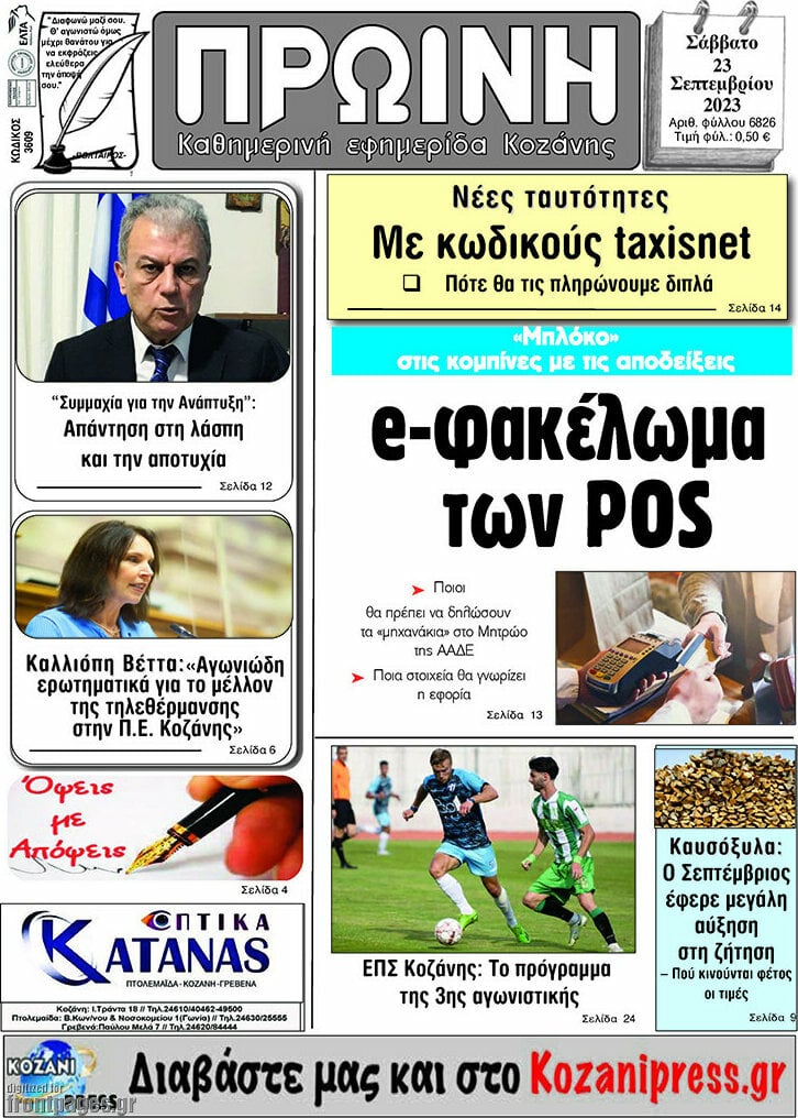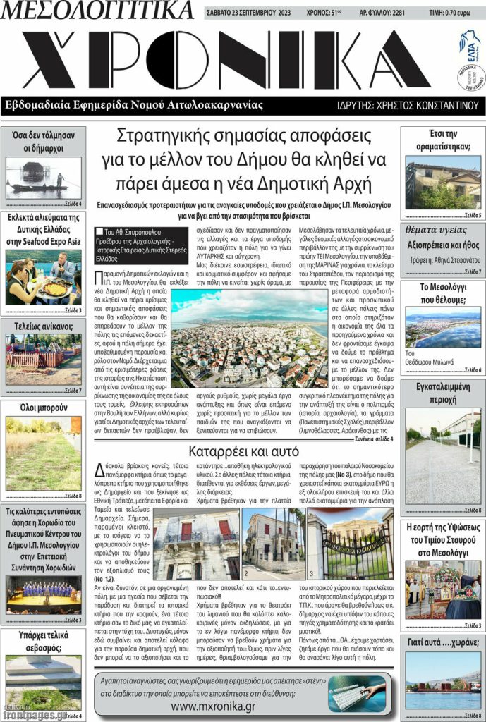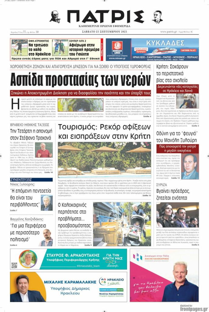 Διαβάστε τα πρωτοσέλιδα των σημερινών τοπικών εφημερίδων