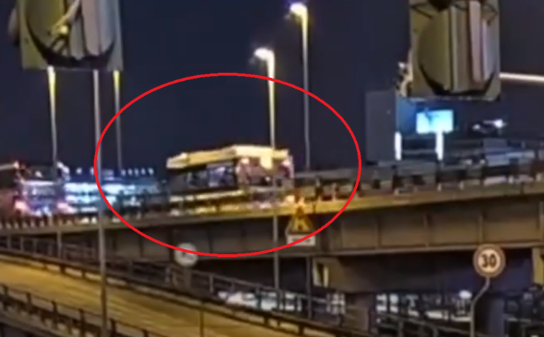 Τη στιγμή που το λεωφορείο πέφτει από τη γέφυρα στην περιοχή της Βενετίας κατέγραψε κάμερα.