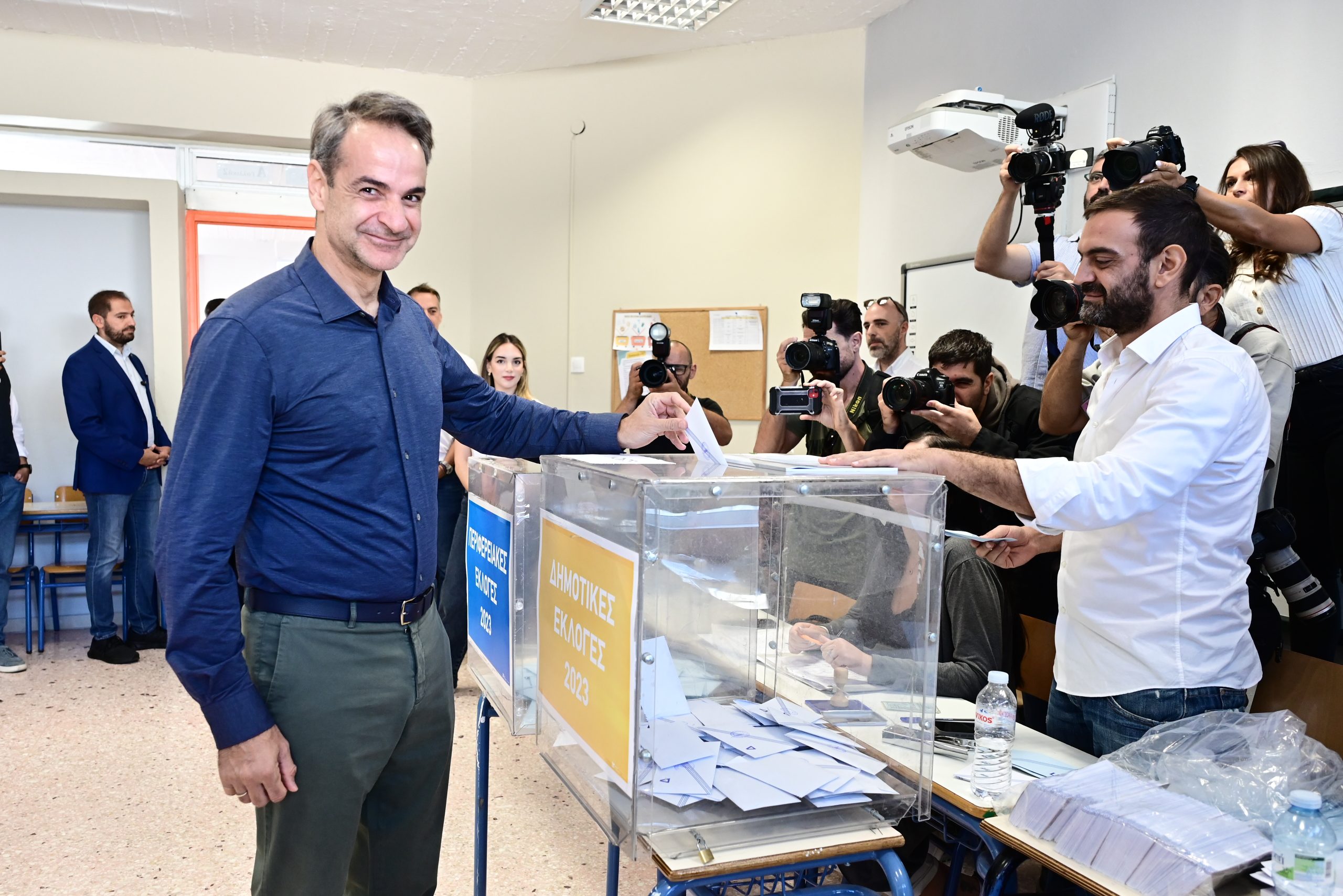 Στο 1ο Λύκειο Κηφισιάς ασκεί το εκλογικό του δικαίωμα ο πρωθυπουργός, Κυριάκος Μητσοτάκης. Ο πρωθυπουργός έδειξε την ηλεκτρονική ταυτότητα μέσω κινητού τηλεφώνου για να ψηφίσει.