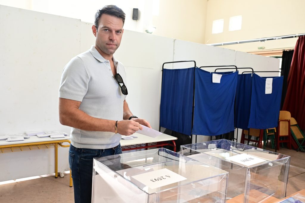 Ο πρόεδρος του ΣΥΡΙΖΑ-ΠΣ, Στέφανος Κασσελάκης, άσκησε το εκλογικό του δικαίωμα σε δημοτικό σχολείο της Εκάλης.