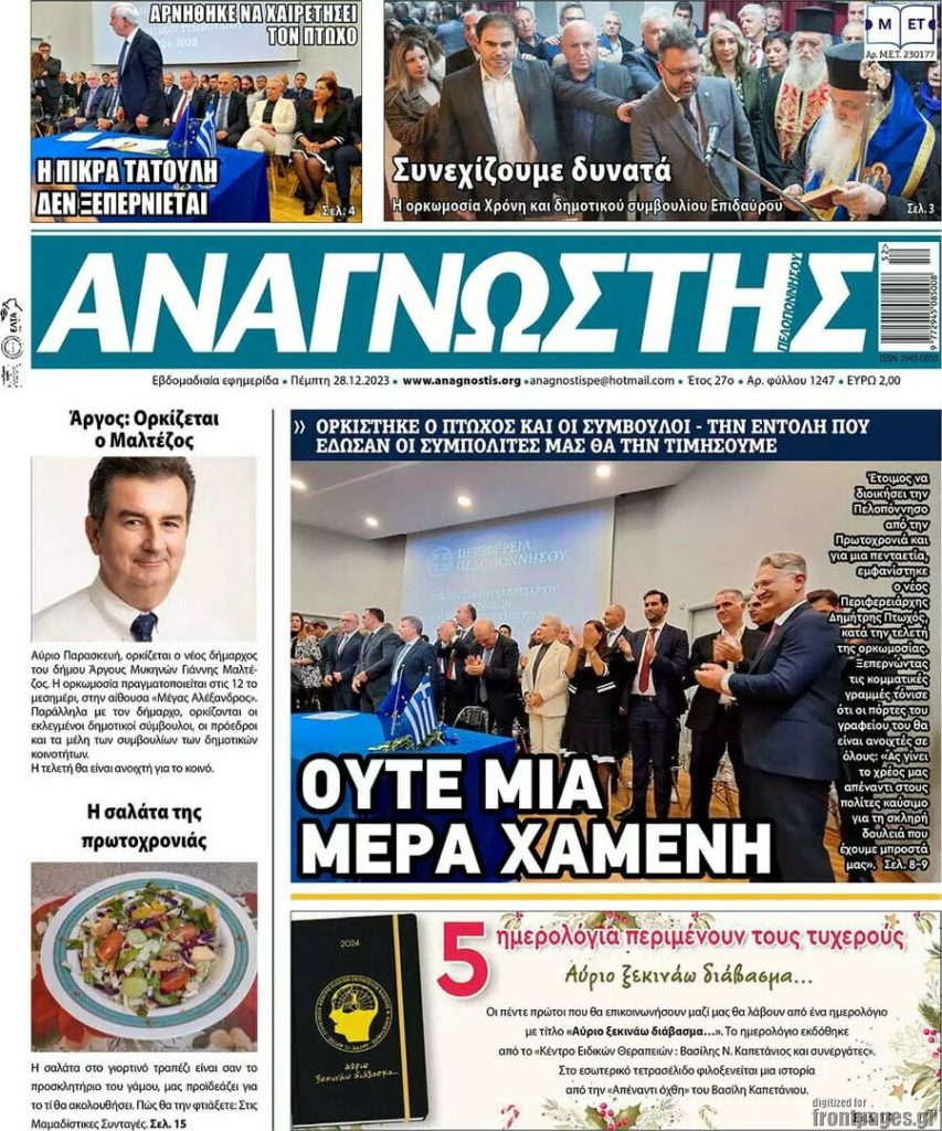 Κοινοποίηση Facebook Twitter LinkedIn Pinterest Email Copy Link Διαβάστε τα πρωτοσέλιδα των σημερινών τοπικών εφημερίδων