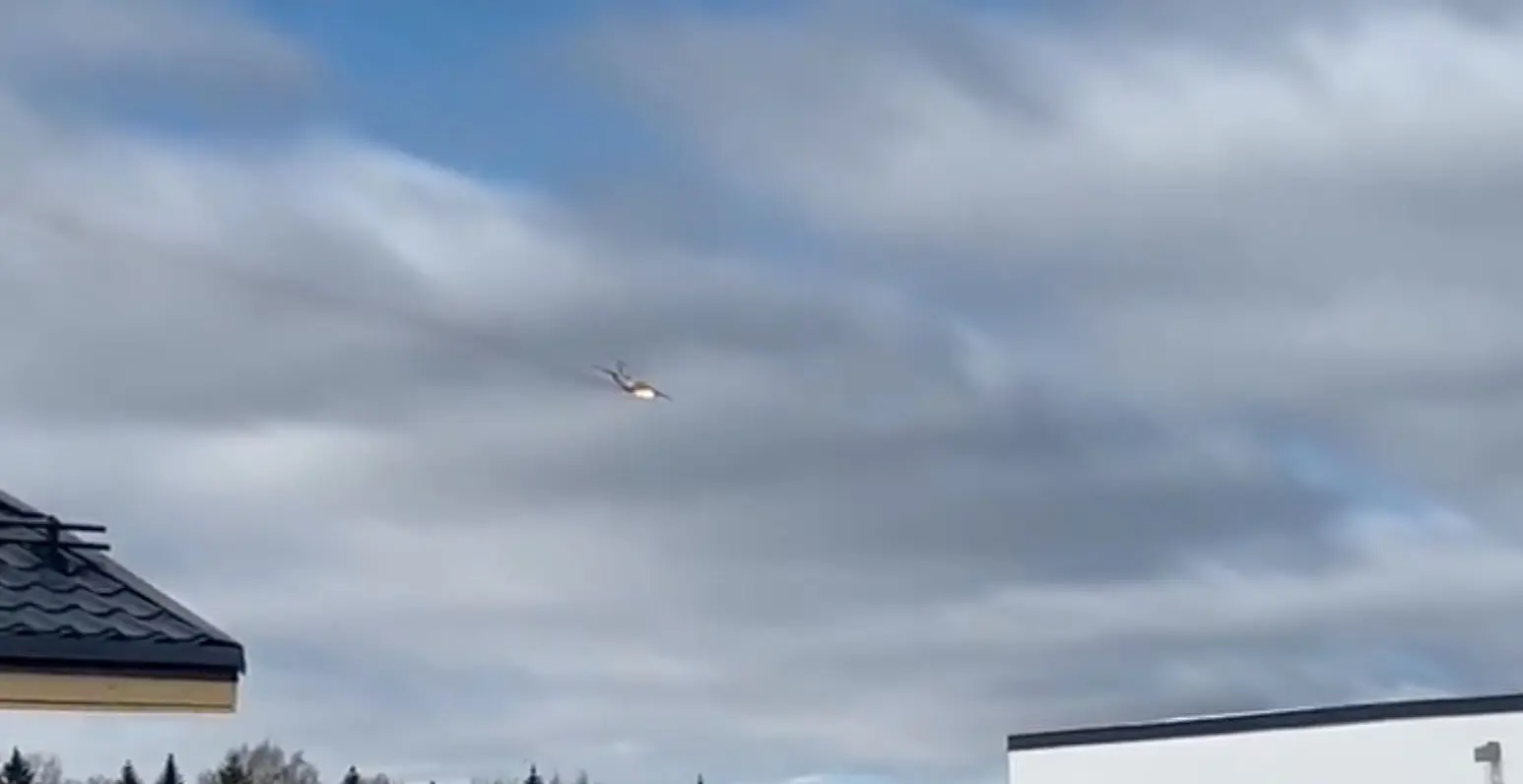 Σε βίντεο που έχει αναρτηθεί στην πλατφόρμα Χ φαίνεται το αεροσκάφος να έχει πάρει φωτιά με τον πιλότο να προσπαθεί να απομακρυνθεί από κατοικημένη περιοχή.