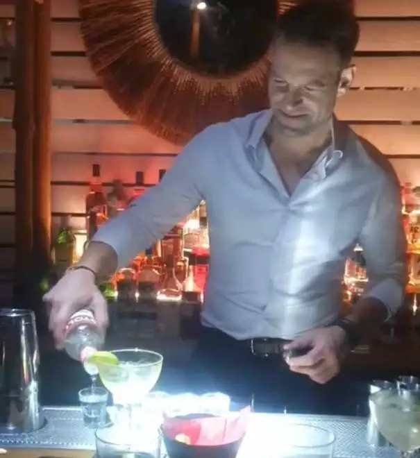 Έχοντας στο χέρι του ένα μπουκάλι ποτό άρχισε να γεμίζει σφηνάκια και να τα μοιράζει σε όσους ήταν εκεί και τον παρακολουθούσαν.