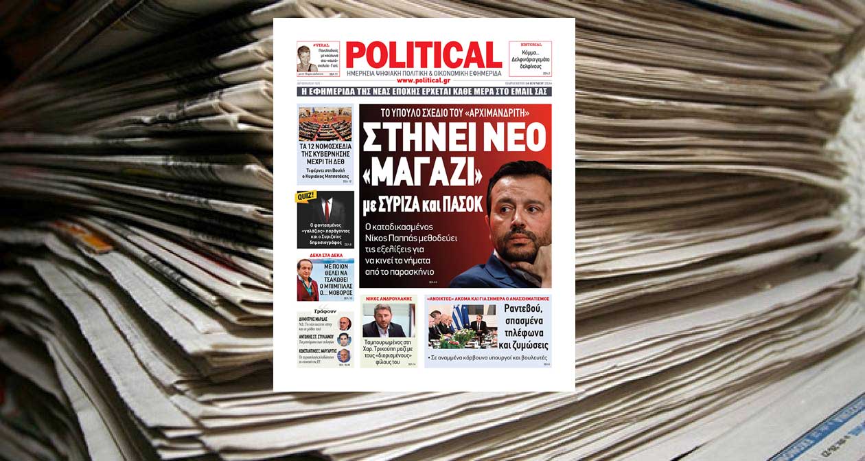 Political: η πρώτη ημερήσια πανελλαδική, ψηφιακή, πολιτική και οικονομική εφημερίδα που μπορείτε να τη διαβάζετε δωρεάν στο κινητό, το tablet και στον υπολογιστή σας.