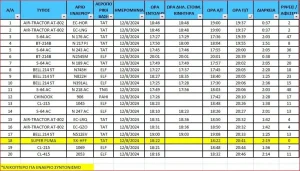 «Σύμφωνα με τα τηρούμενα αρχεία του Πυροσβεστικού Σώματος, αναφορικά με την επιχειρησιακή δραστηριότητα των εναερίων μέσων τις ημέρες της πυρκαγιάς στο Βαρνάβα Αττικής, επιχείρησαν: