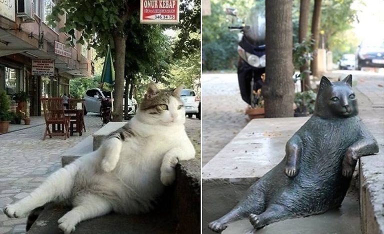 Αυτό το χαριτωμένο άγαλμα γάτας στην Κωνσταντινούπολη ονομάζεται Τόμπιλ και δημιουργήθηκε ως φόρος τιμής για μία αληθινή γάτα που καθόταν ακριβώς με τον ίδιο τρόπο και λάτρευε την επαφή με τους ανθρώπους.