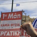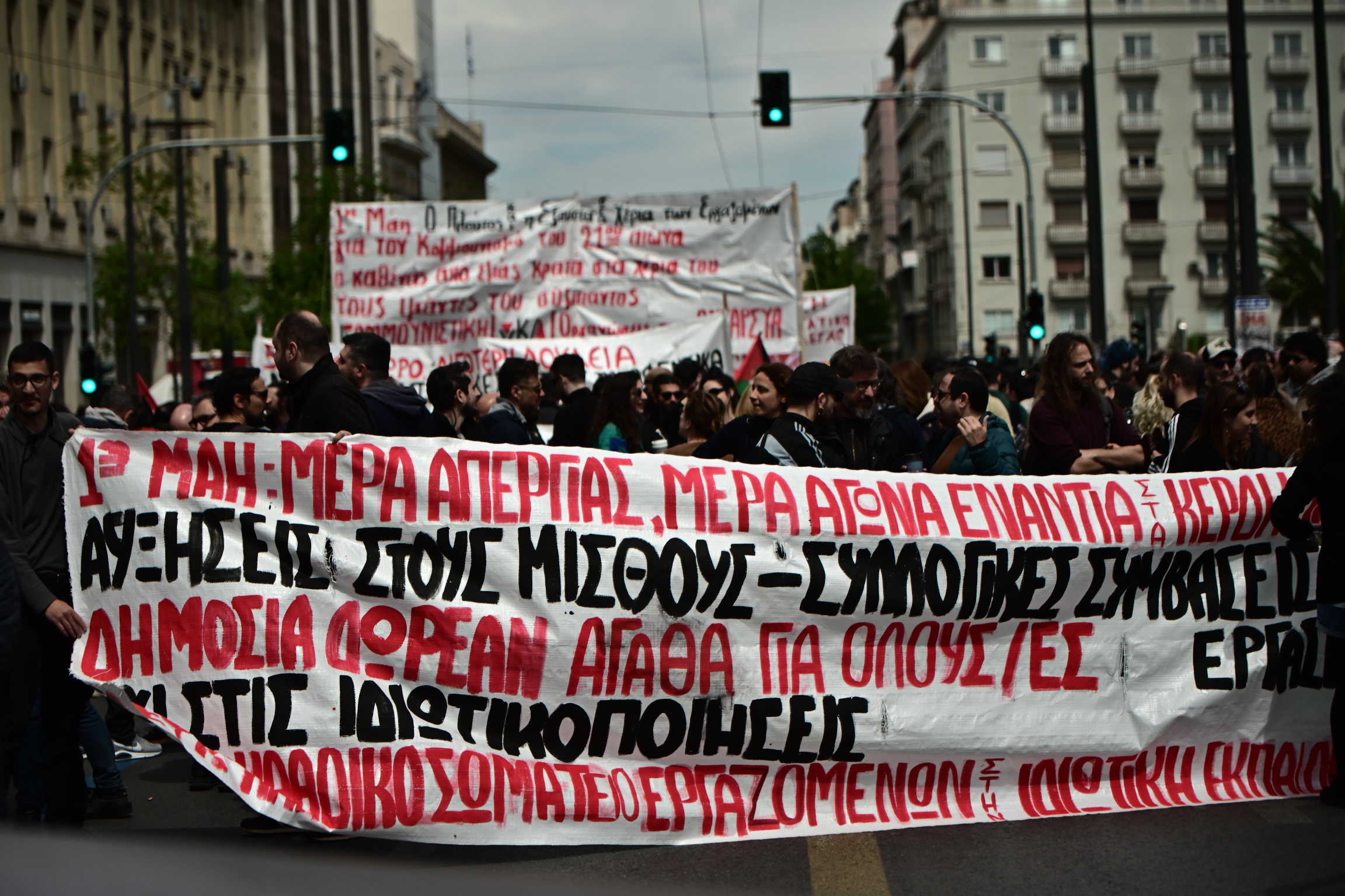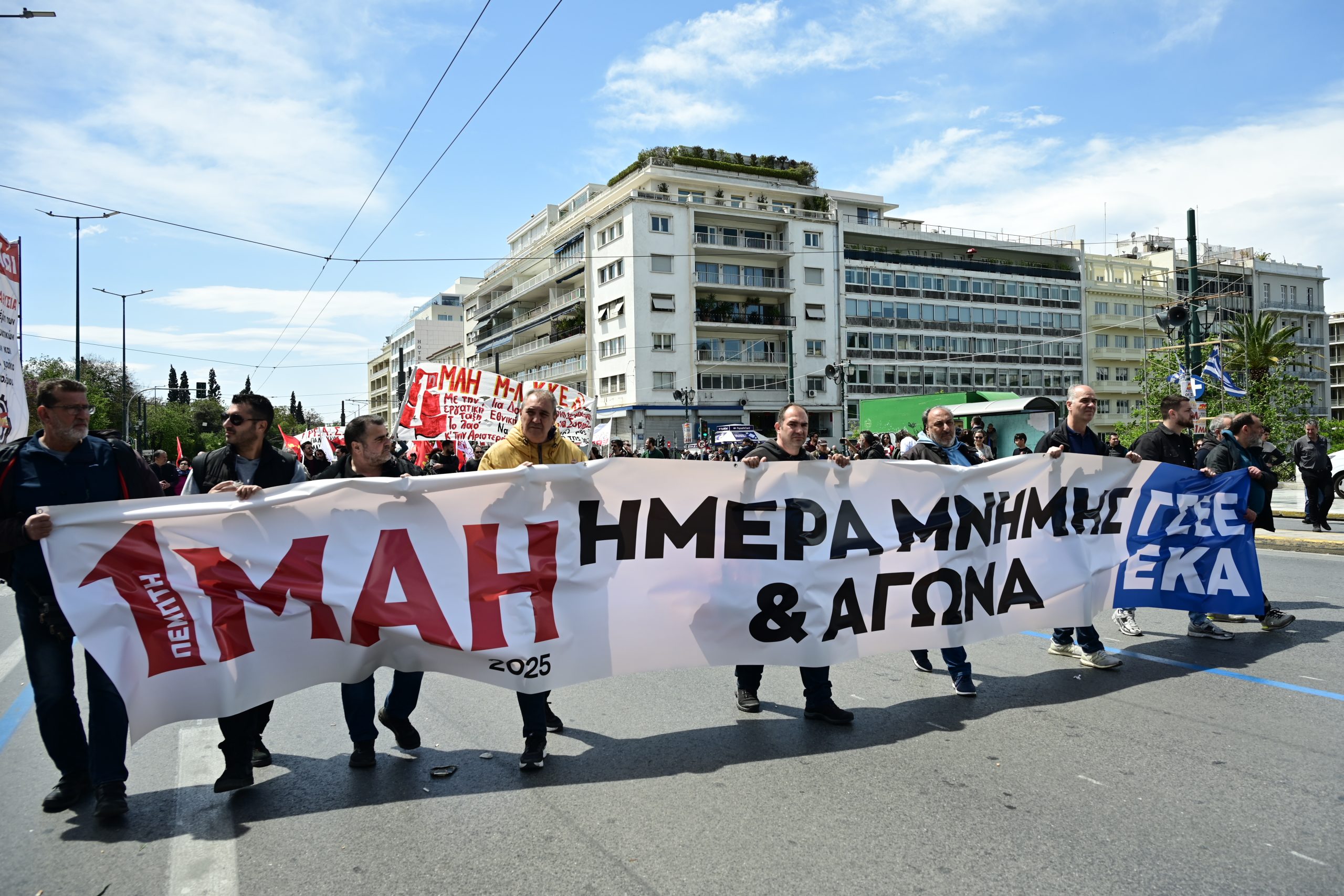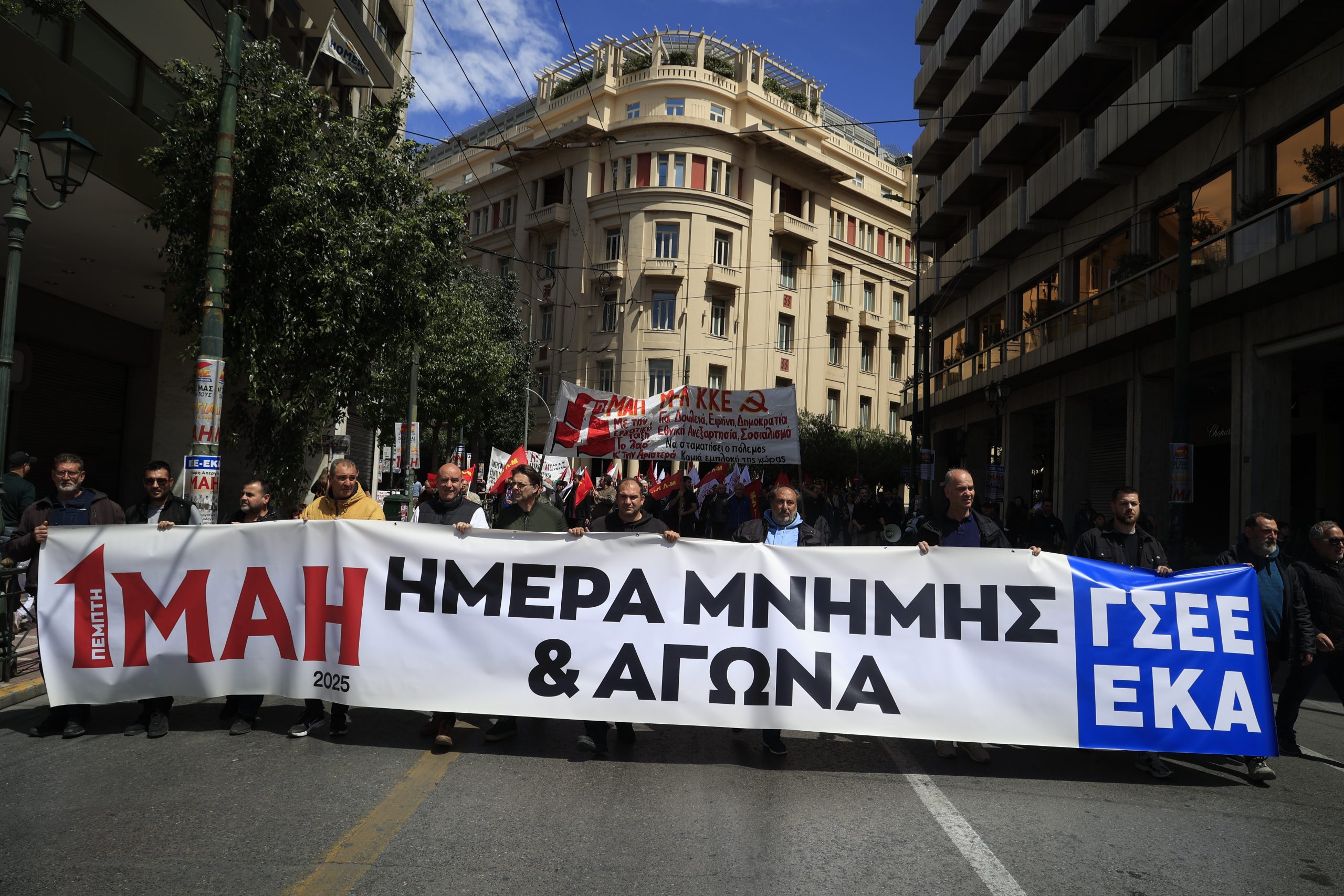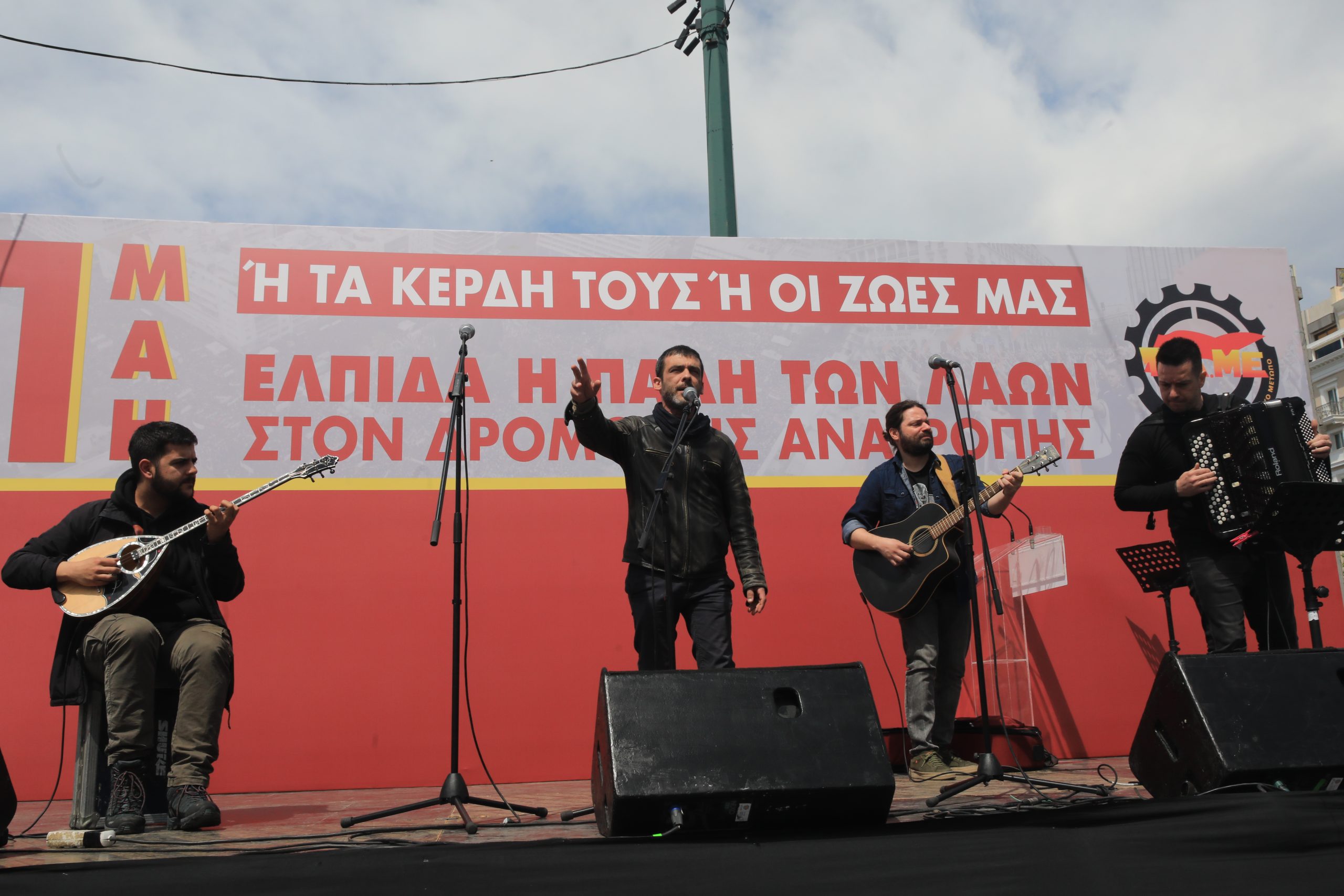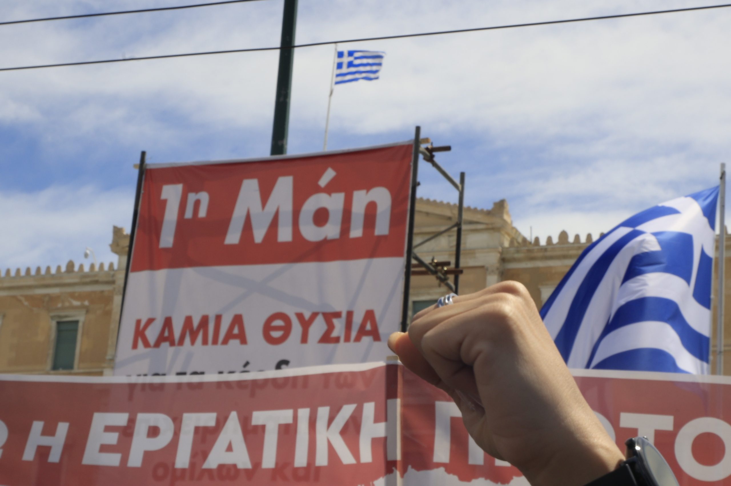 Η απεργιακή συγκέντρωση της Εργατικής Πρωτομαγιάς στο Σύνταγμα που διοργάνωσε το ΠΑΜΕ μαζί με εργατικά συνδικάτα και ομοσπονδίες ολοκληρώθηκε με εργατικά τραγούδια από όλον τον κόσμο και την ανάκρουση του ύμνου της «Διεθνούς».