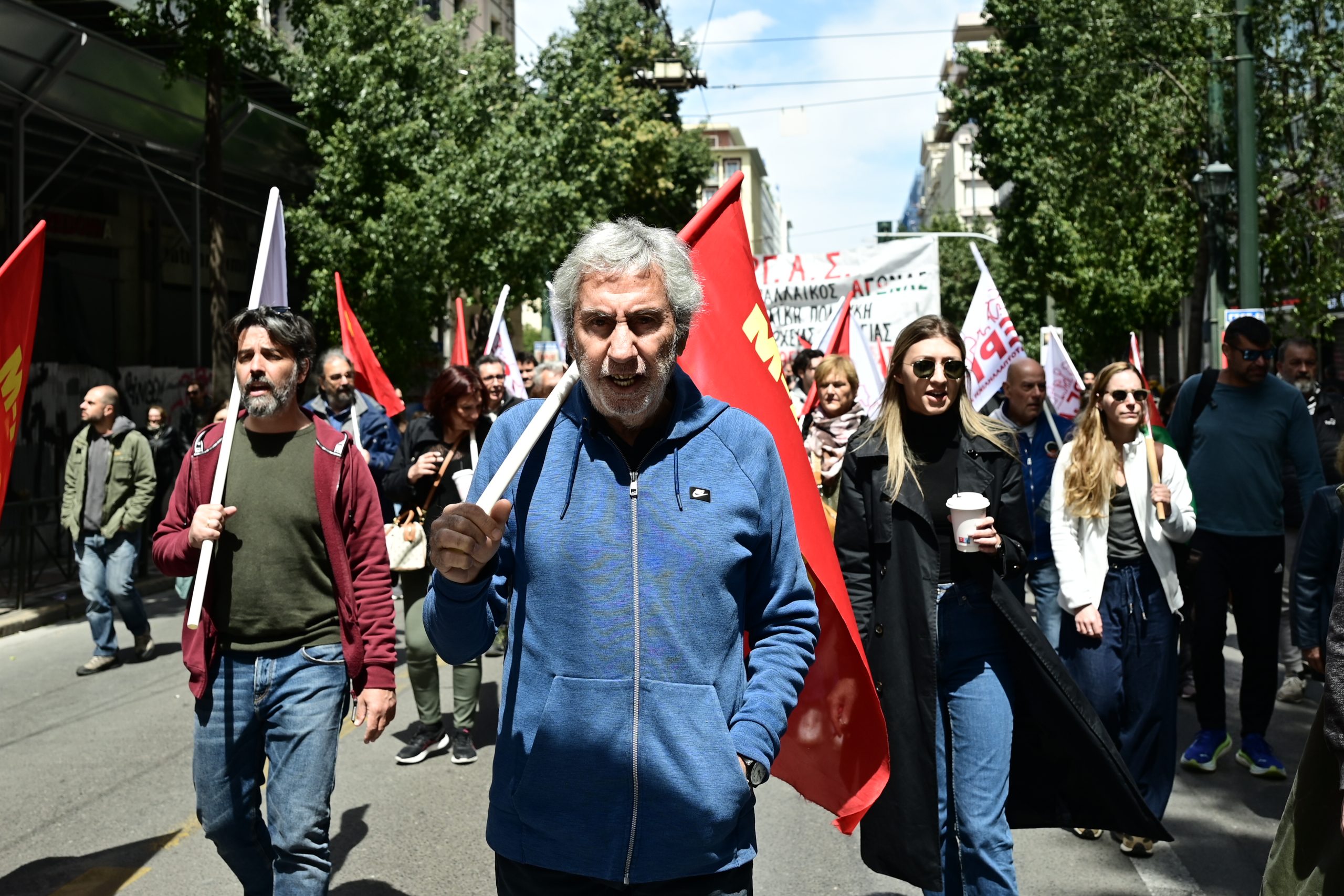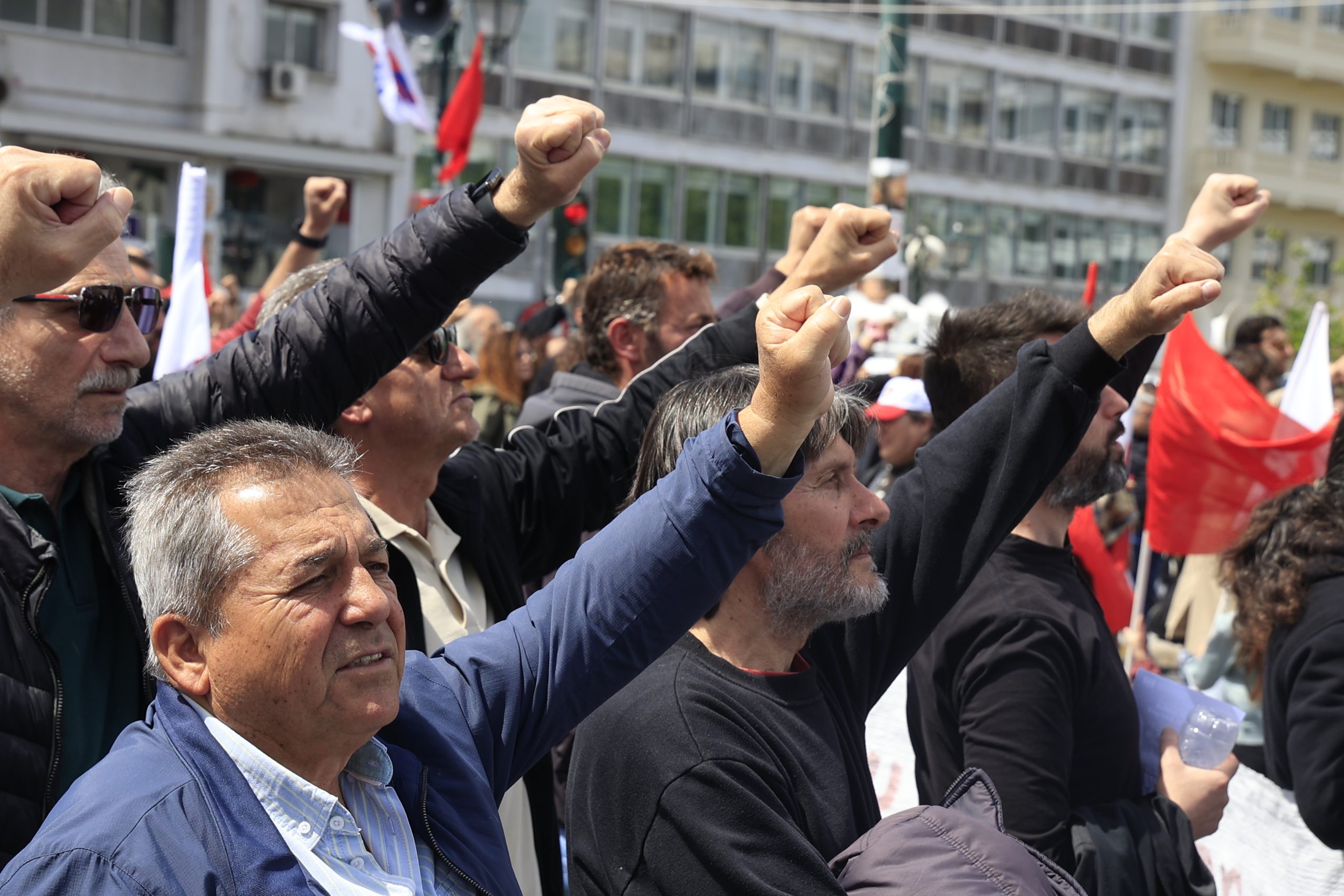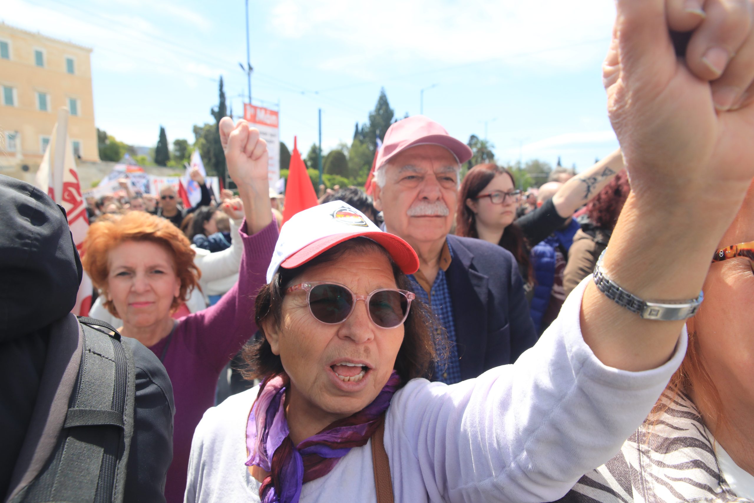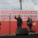 «Σήμερα σηκώνουμε μαζί τη γροθιά με τους συναδέλφους και τις συναδέλφισσες μετανάστες και πρόσφυγες. Εκφράζουμε και από αυτό το βήμα την αλληλεγγύη μας στον λαό της Παλαιστίνης, σε όλους τους λαούς που δοκιμάζονται από τους ιμπεριαλιστικούς πολέμους».