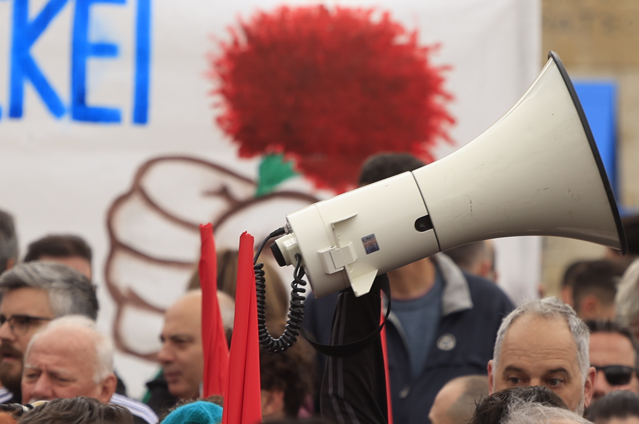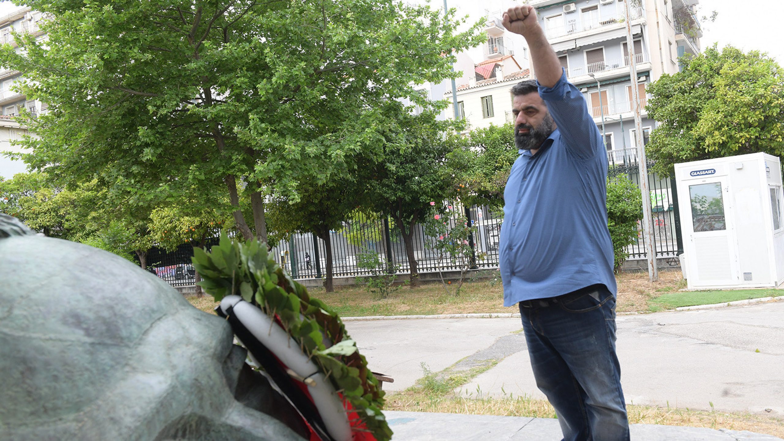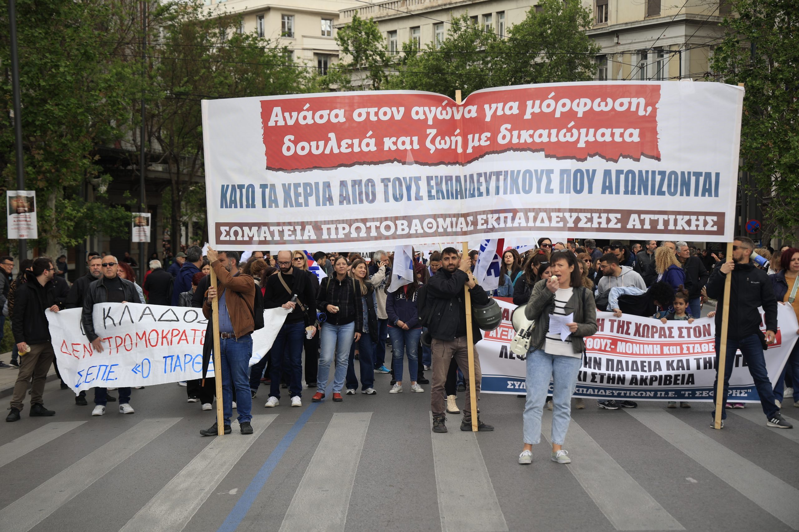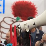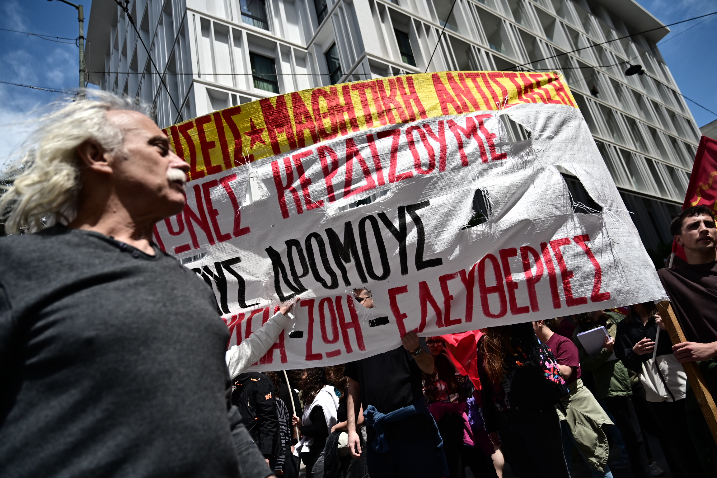 «Σήμερα σηκώνουμε μαζί τη γροθιά με τους συναδέλφους και τις συναδέλφισσες μετανάστες και πρόσφυγες. Εκφράζουμε και από αυτό το βήμα την αλληλεγγύη μας στον λαό της Παλαιστίνης, σε όλους τους λαούς που δοκιμάζονται από τους ιμπεριαλιστικούς πολέμους».