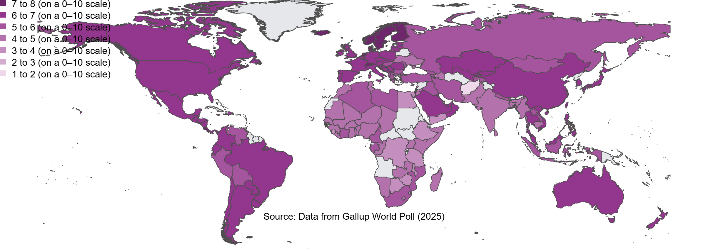 Το φαινόμενο εμφανίζεται πιο έντονο σε Ευρώπη και Ηνωμένες Πολιτείες. Αντίθετα, σε χώρες της Λατινικής Αμερικής, οι νέοι εμφανίζονται πιο ικανοποιημένοι, γεγονός που αναδεικνύει τον καθοριστικό ρόλο του κοινωνικού περιβάλλοντος.