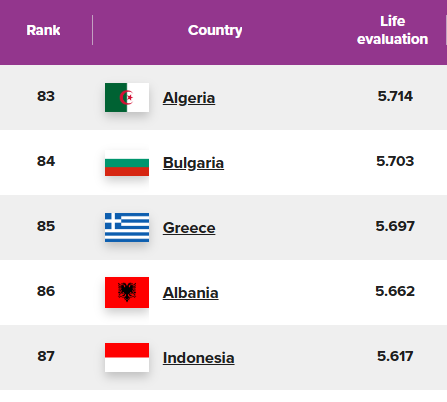 Στην έκθεση, η χώρα μας βρίσκεται αρκετά χαμηλά και συγκεκριμένα στην 85η θέση, πίσω όχι μόνο από τις σκανδιναβικές χώρες, αλλά και από χώρες όπως η Γουατεμάλα, το Βιετνάμ και η Νικαράγουα. Και ξαφνικά μένεις με την ερώτηση: ζούμε πραγματικά καλά ή απλώς προσπαθούμε να τα βγάλουμε πέρα;
