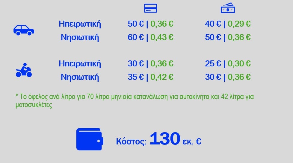 - Για λοιπούς δικαιούχους οχημάτων: ποσά που ξεκινούν από περίπου 100€ και μπορεί να φτάσουν έως 350€, ανάλογα με τα εισοδηματικά και γεωγραφικά κριτήρια