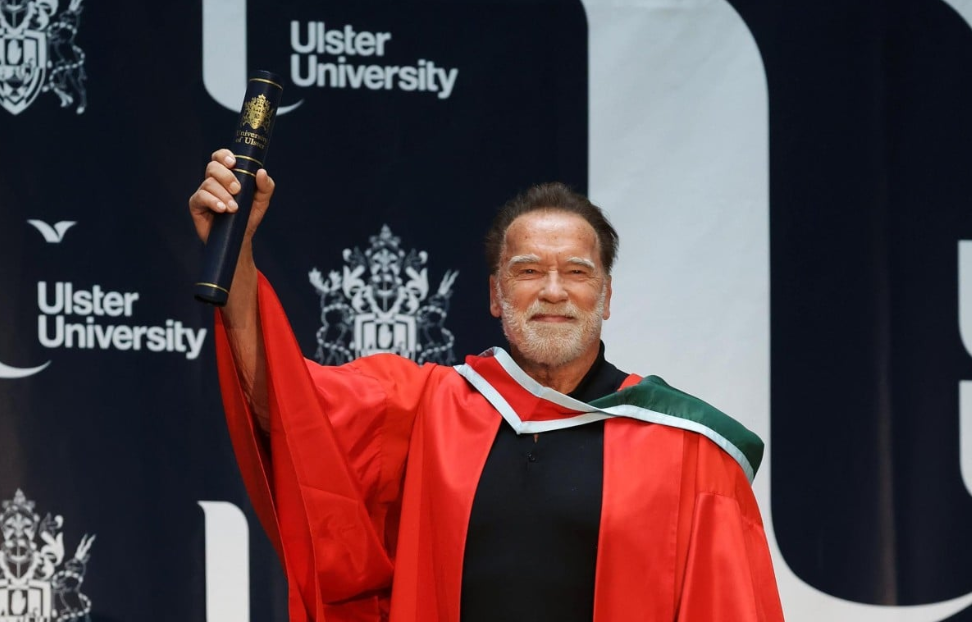 Ο Άρνολντ Σβαρτσενέγκερ προέτρεψε τους φοιτητές του Πανεπιστημίου Όλστερ στο Μπέλφαστ να «επιλέγουν τους μεγαλύτερους στόχους» και να αντιμετωπίζουν τις δυσκολίες με επιμονή και πειθαρχία, κατά τη διάρκεια εκδήλωσης όπου του απονεμήθηκε επίτιμο διδακτορικό για την πολυετή συμβολή του στην κοινωφελή δράση, την προστασία του περιβάλλοντος και τις τέχνες.