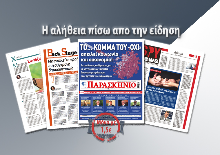 Μη χάσετε το Σάββατο 14 Ιανουαρίου το «ΠΑΡΑΣΚΗΝΙΟ», που κυκλοφορεί με ρεπορτάζ, έρευνες και παρεμβάσεις οι οποίες θα συζητηθούν.
