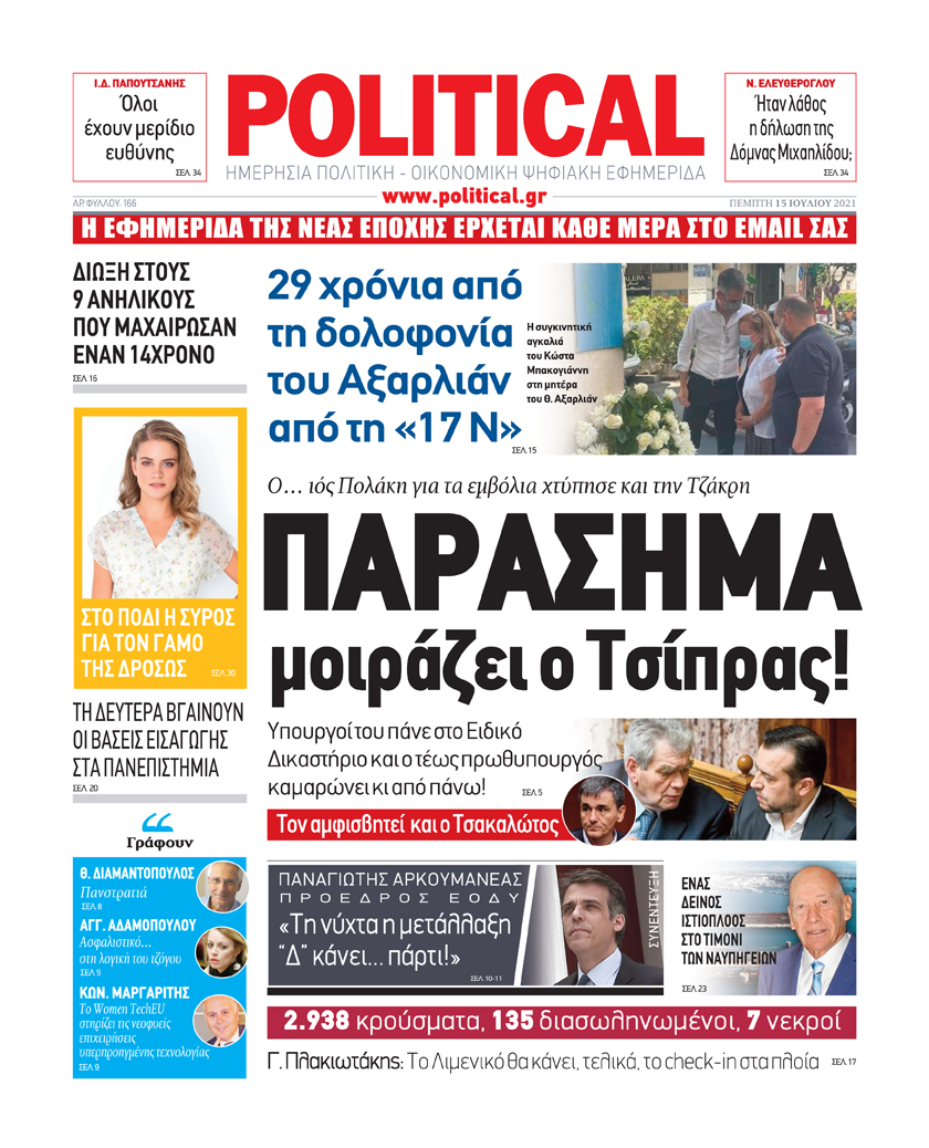 ΠΑΡΑΣΗΜΑ μοιράζει ο Τσίπρας! – Διαβάστε σήμερα στην εφημερίδα Political