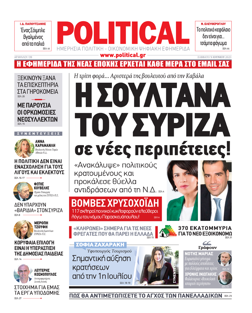 Η ΣΟΥΛΤΑΝΑ ΤΟΥ ΣΥΡΙΖΑ σε νέες περιπέτειες! – Διαβάστε σήμερα στην Political