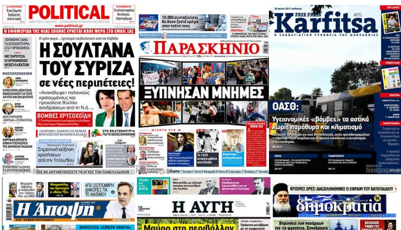 Δείτε τα πρωτοσέλιδα των σημερινών εφημερίδων
