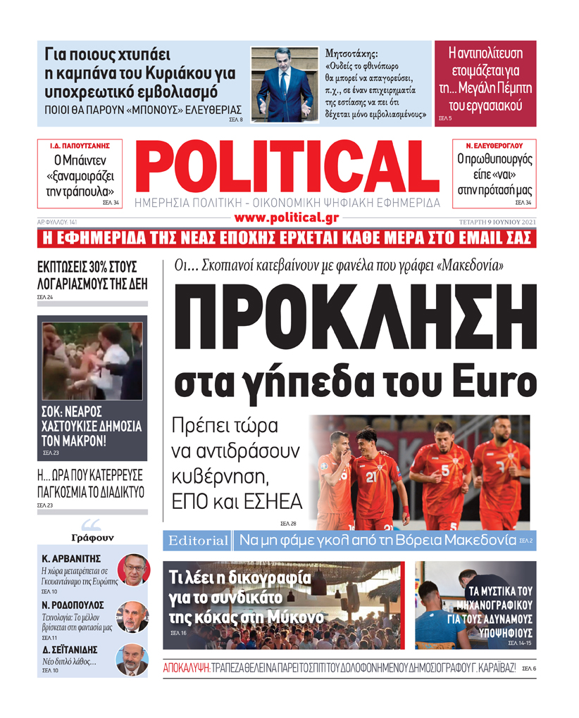 Political: η πρώτη πανελλαδική, ημερήσια, πολιτική-οικονομική ψηφιακή εφημερίδα που μπορείτε να τη διαβάζετε δωρεάν στο κινητό, το tablet και στον υπολογιστή σας.
