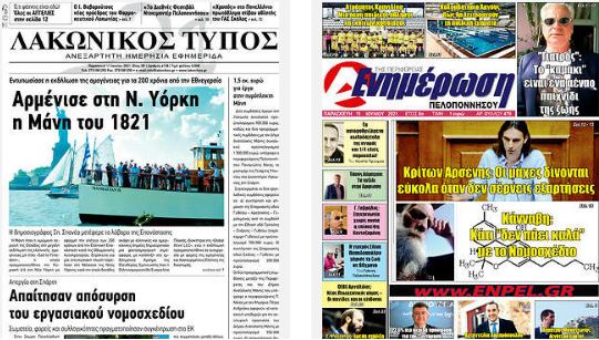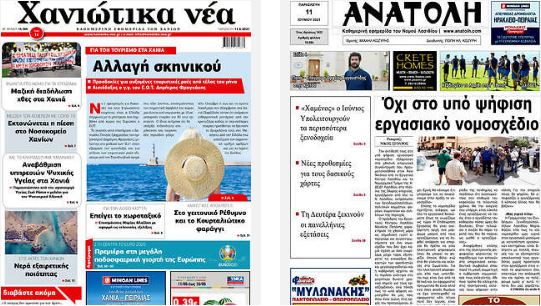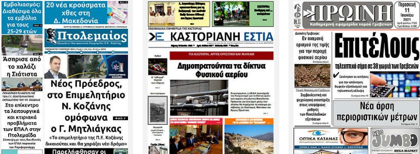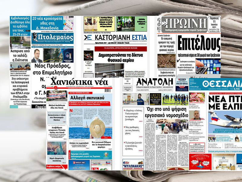 Διαβάστε τα πρωτοσέλιδα των σημερινών τοπικών εφημερίδων
