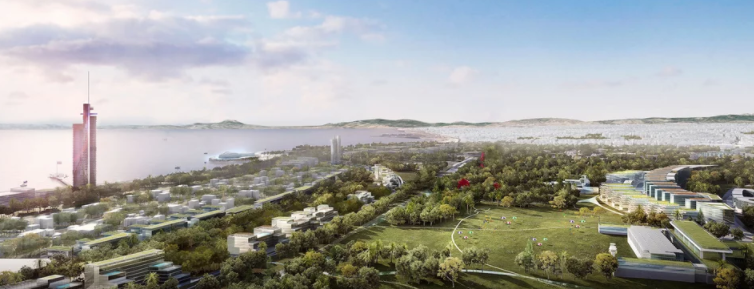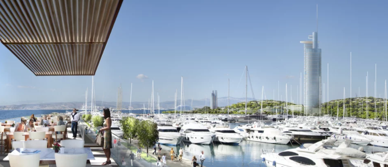-Ουρανοξύστης κατοικιών με ύψος έως 200 μέτρα από τη στάθμη της θάλασσας επίσης στο παράκτιο μέτωπο, κοντά στη μαρίνα του Αγίου Κοσμά.