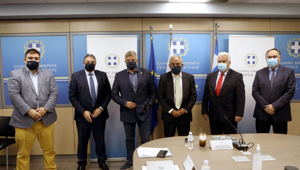 Στο πλαίσιο της διαβούλευσης που έχει ξεκινήσει η Περιφέρεια με τους εκπροσώπους επαγγελματικών φορέων με αντικείμενο τη δρομολόγηση δράσεων στήριξης του επιχειρείν στην Αττικής, ενόψει του νέου ΠΕΠ Αττικής 2021-2027,ο Περιφερειάρχης Αττικής Γ. Πατούλης συναντήθηκε με τους Προέδρους των Επαγγελματικών Επιμελητηρίων Αθηνών και Πειραιώς.