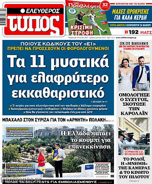 Δείτε τα πρωτοσέλιδα των σημερινών εφημερίδων