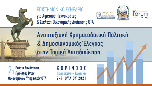 3ήμερο Επιστημονικό Συνέδριο: «Αναπτυξιακή Χρηματοδοτική Πολιτική & Δημοσιονομικός Έλεγχος στην Τοπική Αυτοδιοίκηση», στην Κόρινθο, στις 2-4 Ιουλίου, 2021.