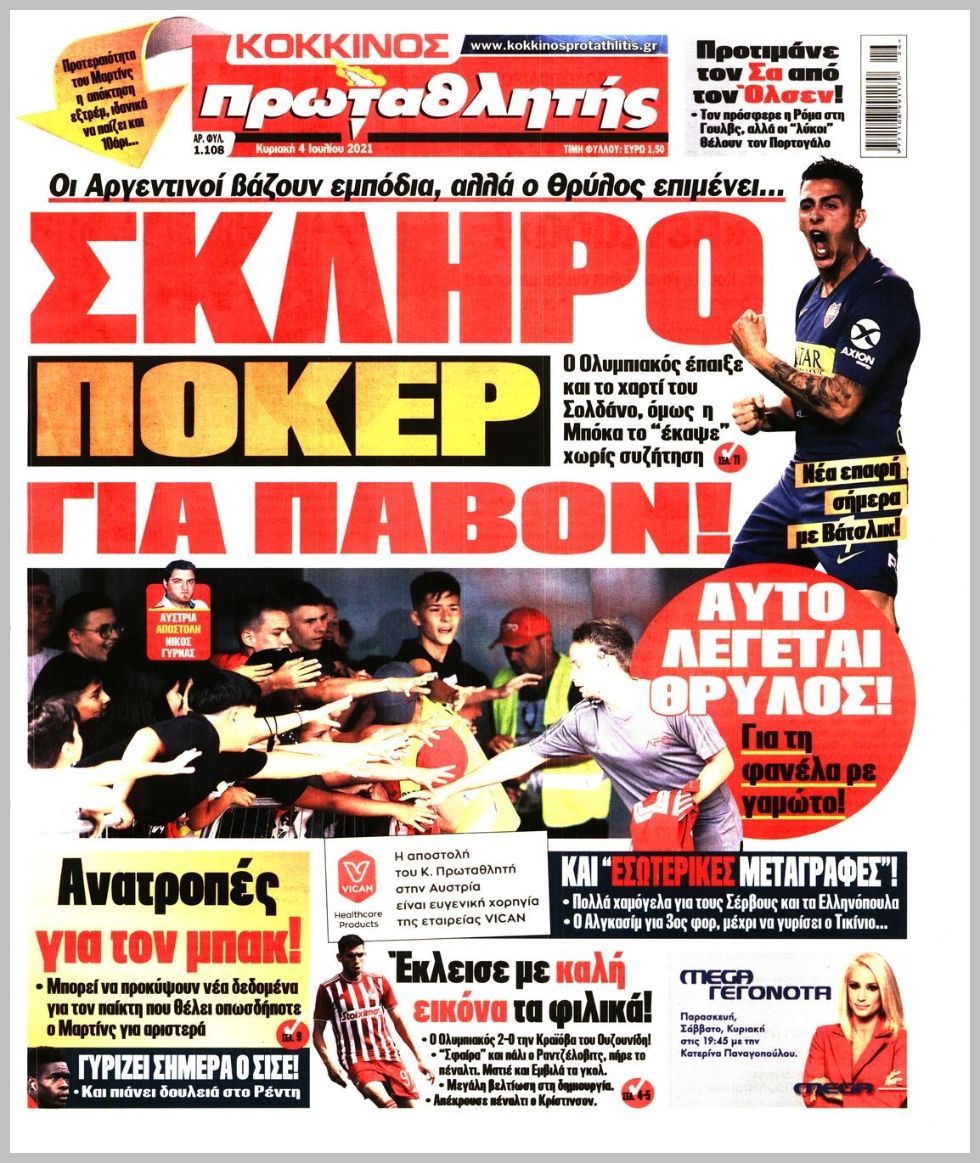 Τα πρωτοσέλιδα των αθλητικών εφημερίδων