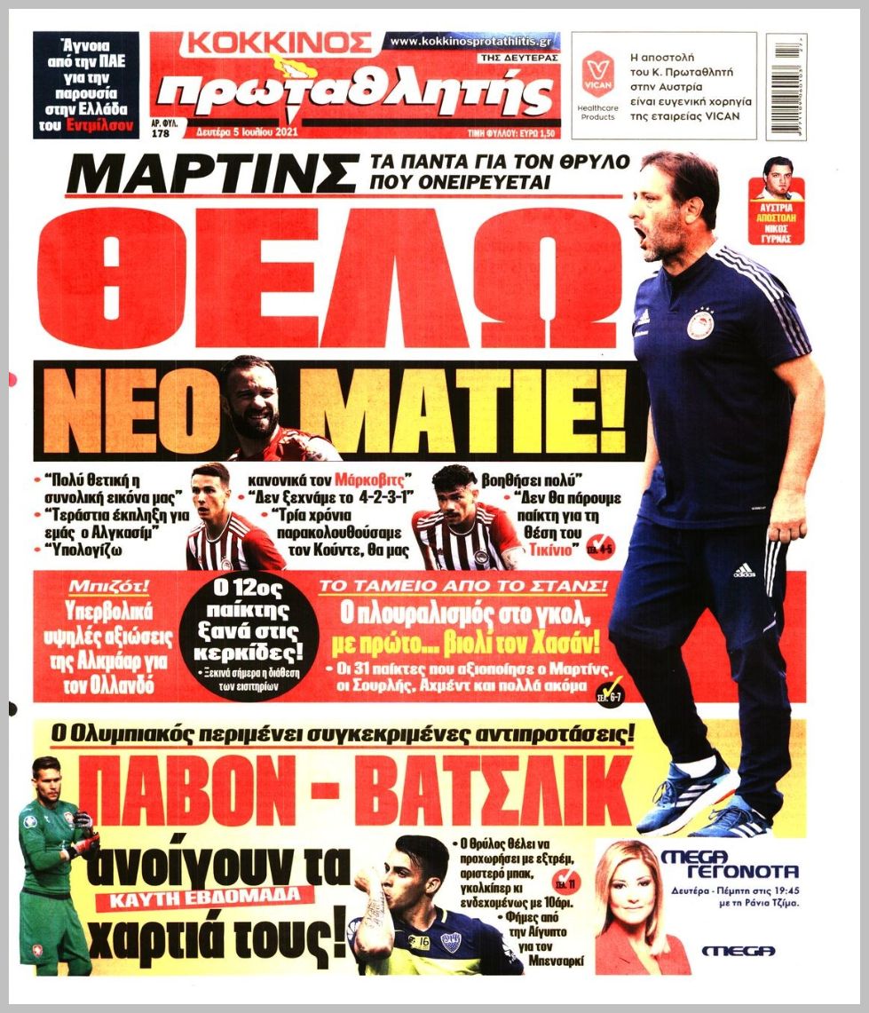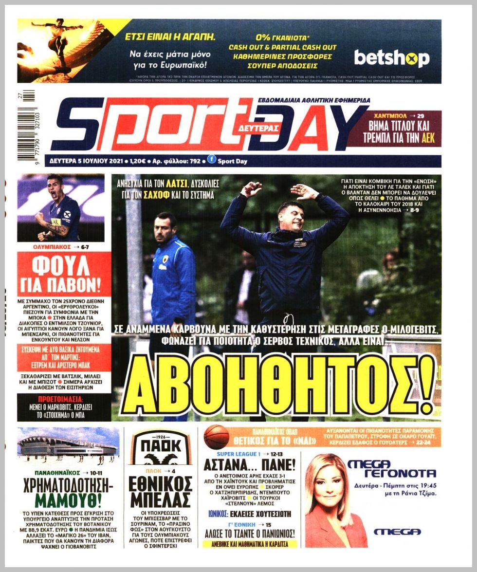 Διαβάστε τα πρωτοσέλιδα των σημερινών αθλητικών εφημερίδων