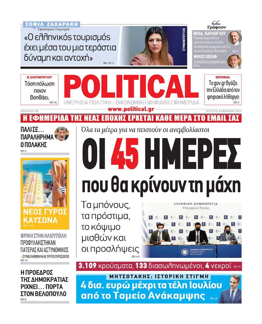 ΟΙ 45 ΗΜΕΡΕΣ που θα κρίνουν τη μάχη – Διαβάστε σήμερα στην εφημερίδα Political