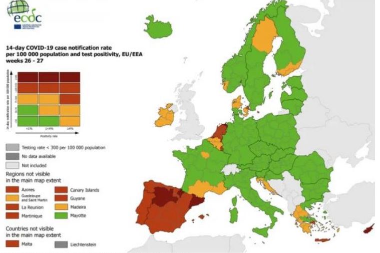 Η επιδείνωση της επιδημιολογικής εικόνας επιβεβαιώνεται και από τους επικαιροποιημένους χάρτες του ECDC.