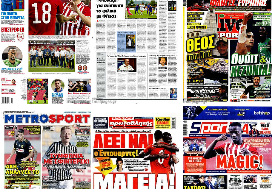 Δείτετ Τα πρωτοσέλιδα των σημερινών αθλητικών εφημερίδων