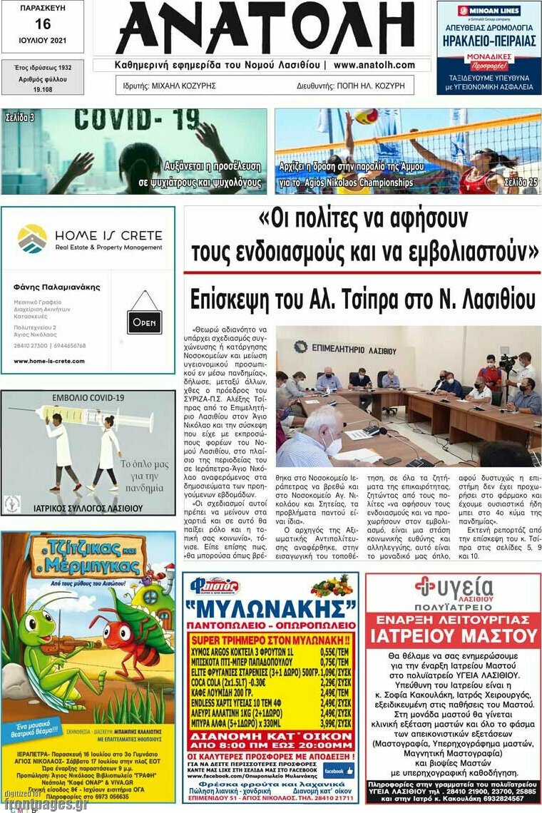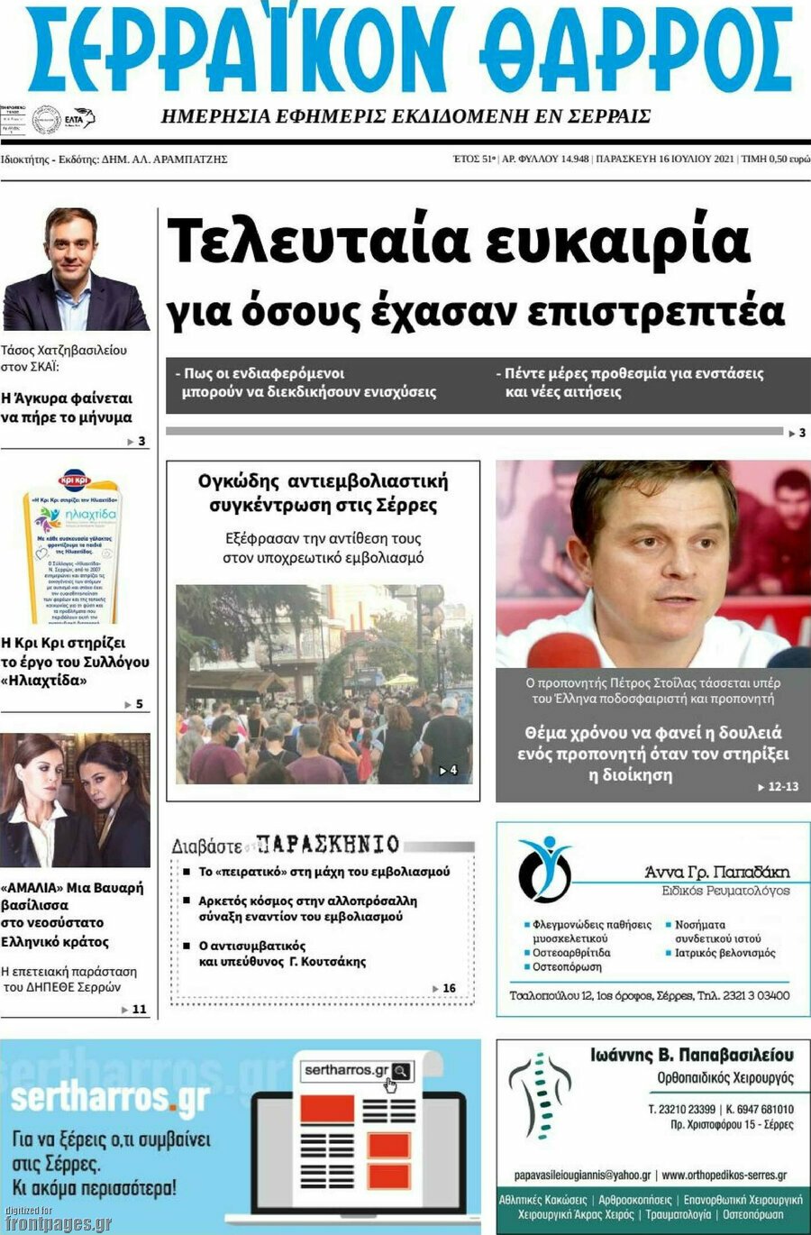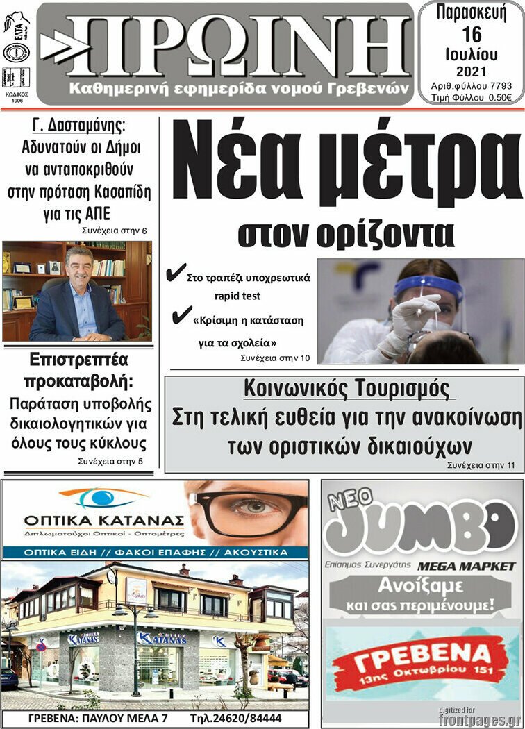 Δείτε τα πρωτοσέλιδα των τοπικών εφημερίδων