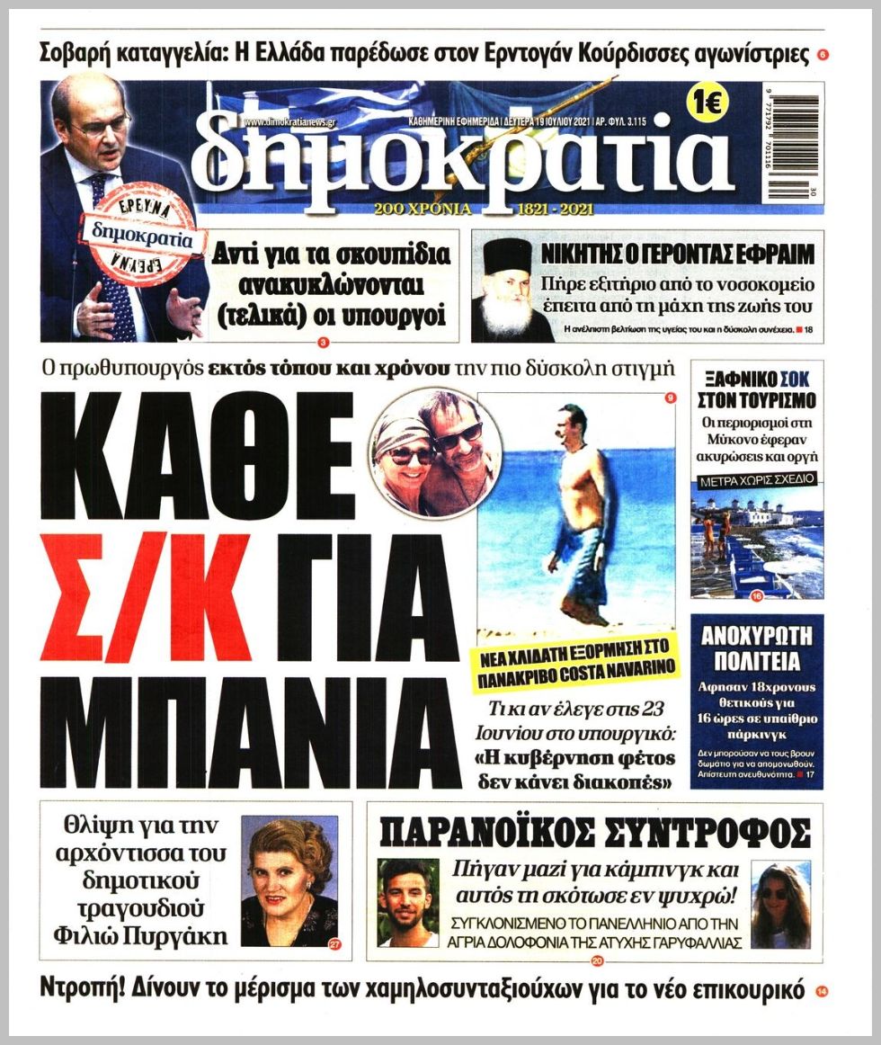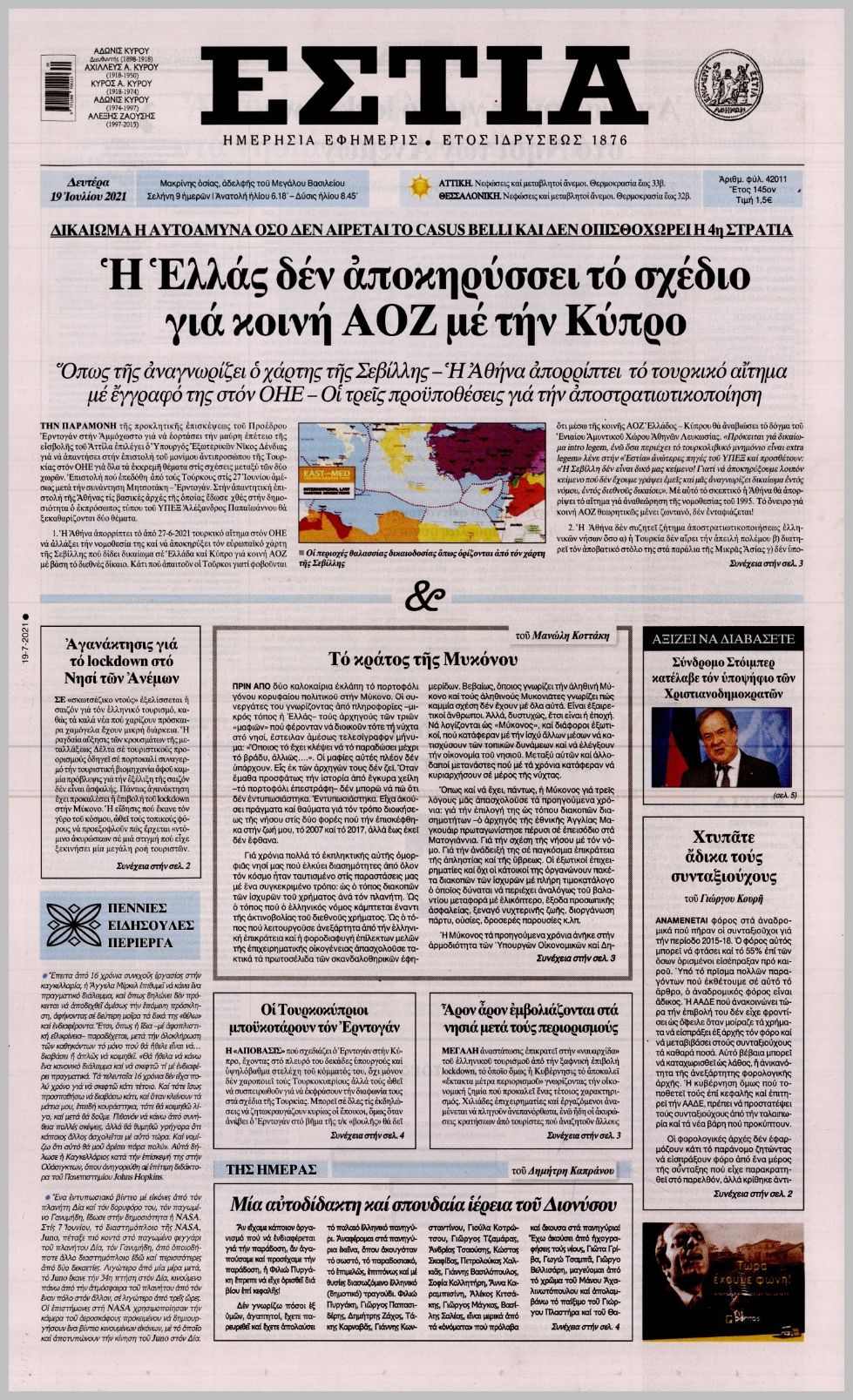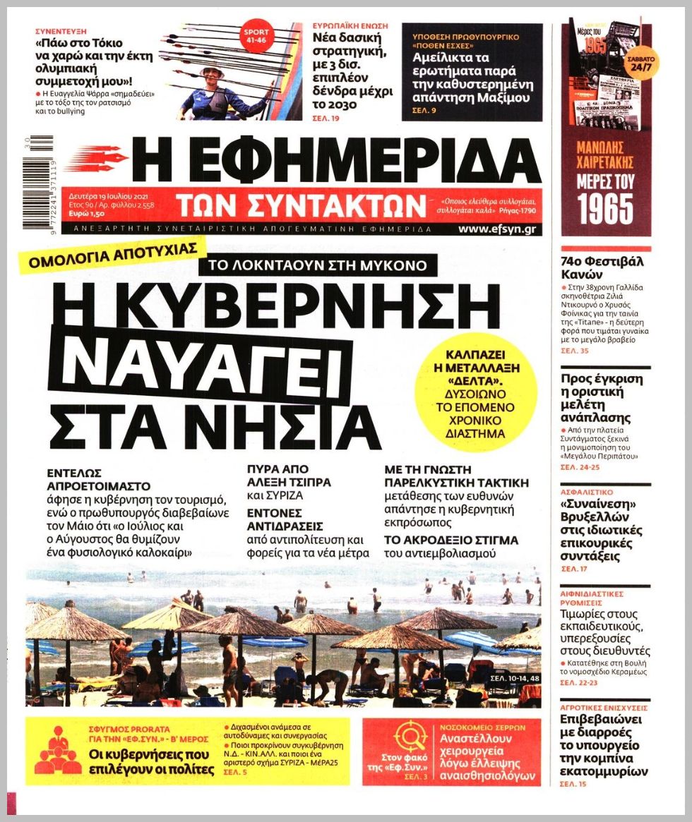 Διαβάστε τα πρωτοσέλιδα των σημερινών εφημερίδων