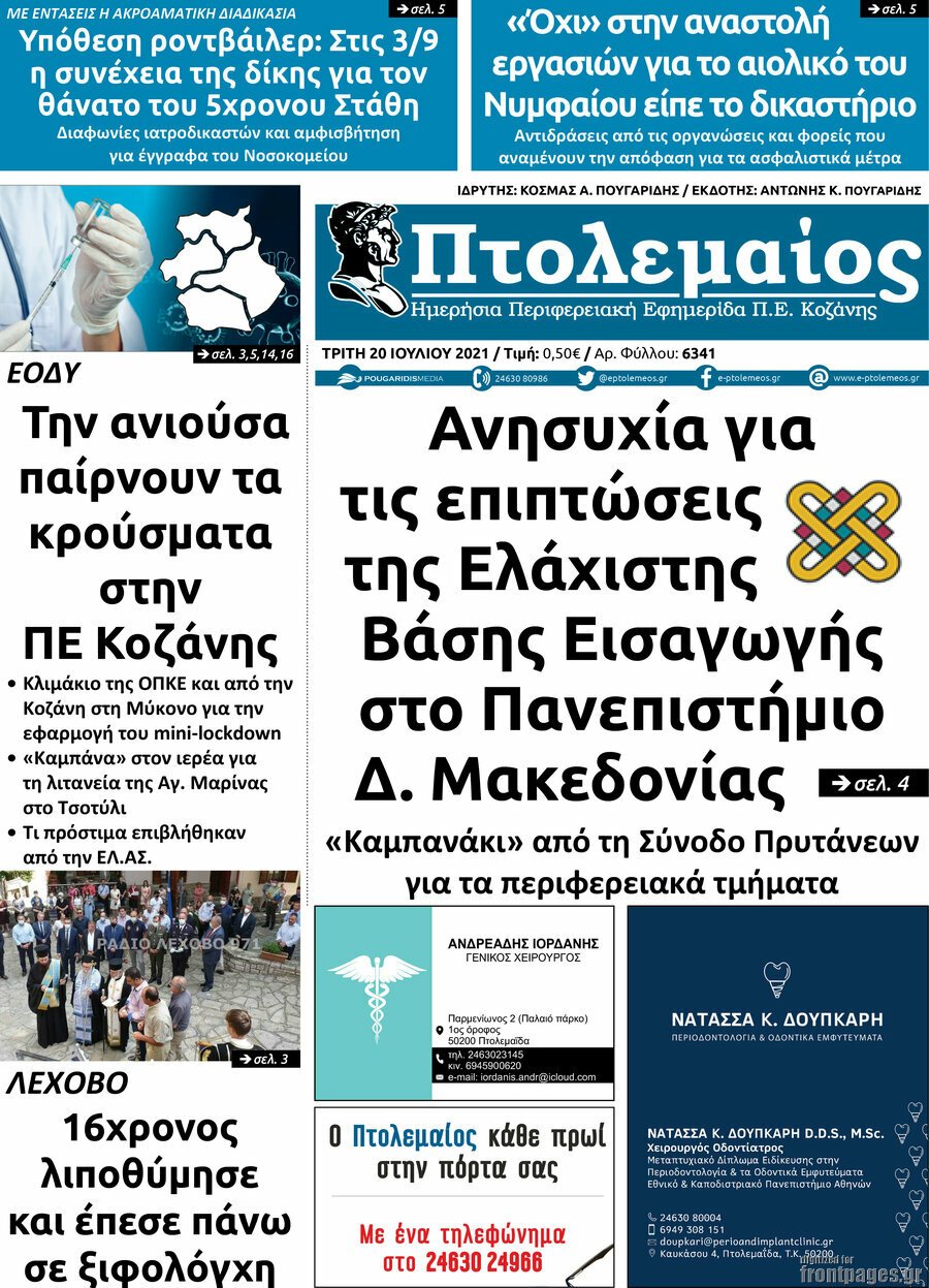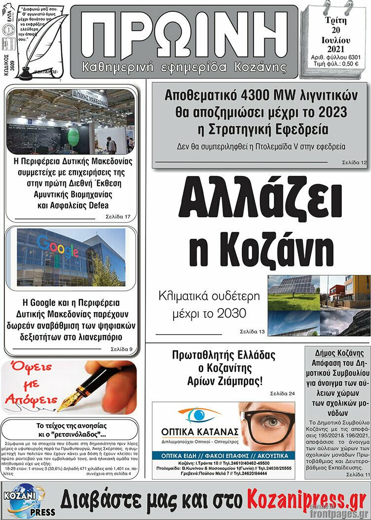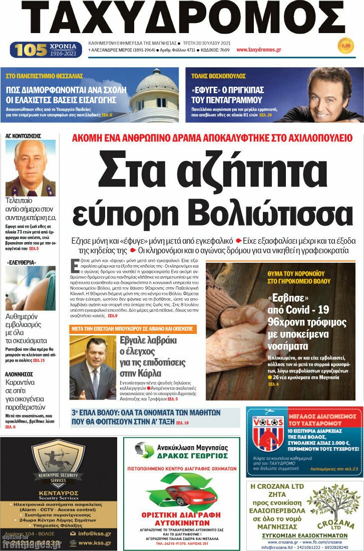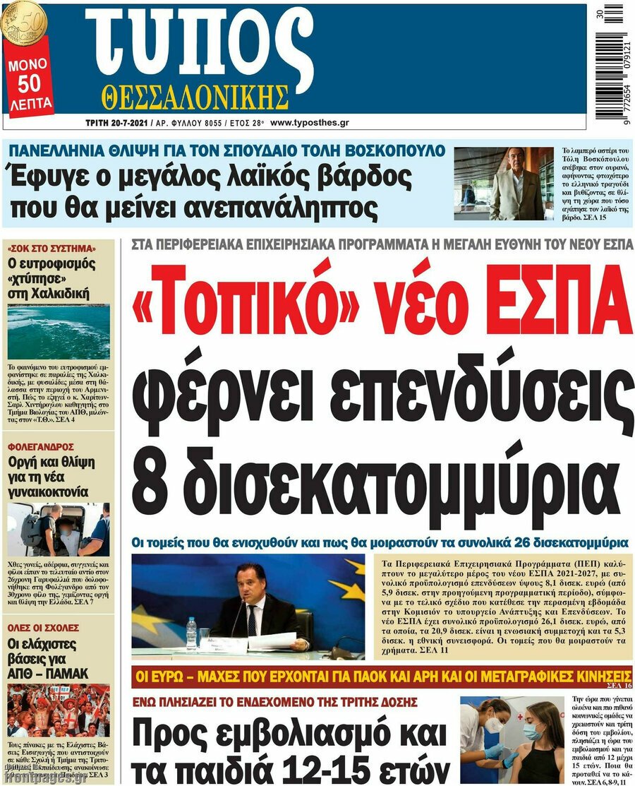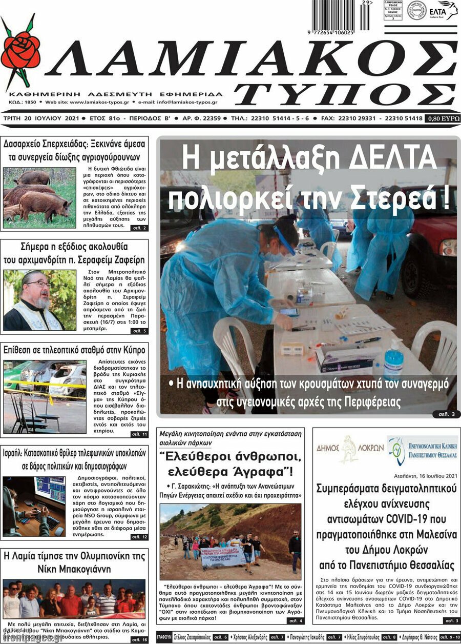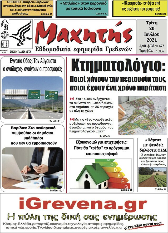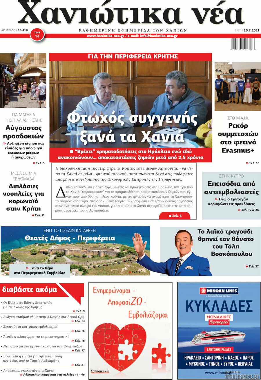 Διαβάστε τα πρωτοσέλιδα των σημερινών τοπικών εφημερίδων
