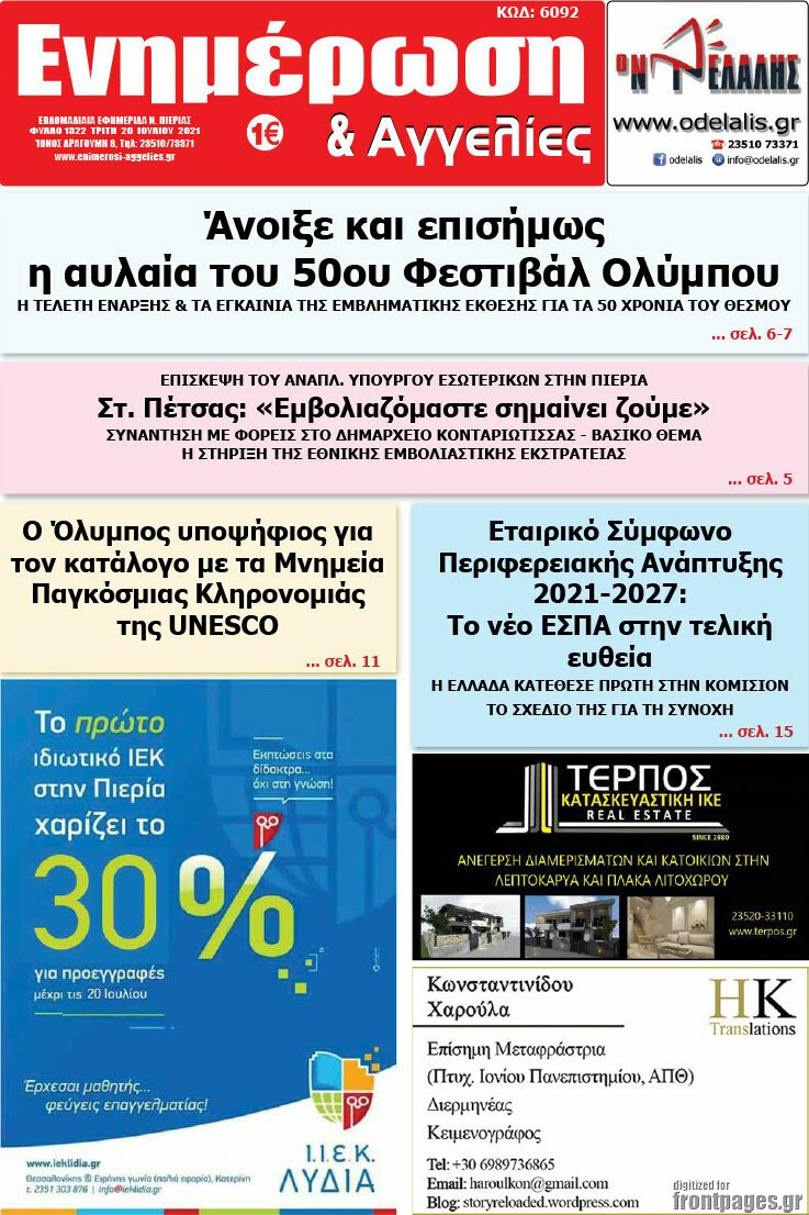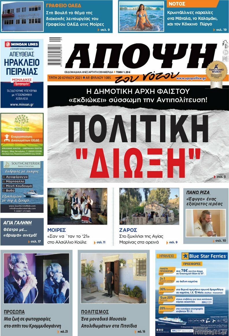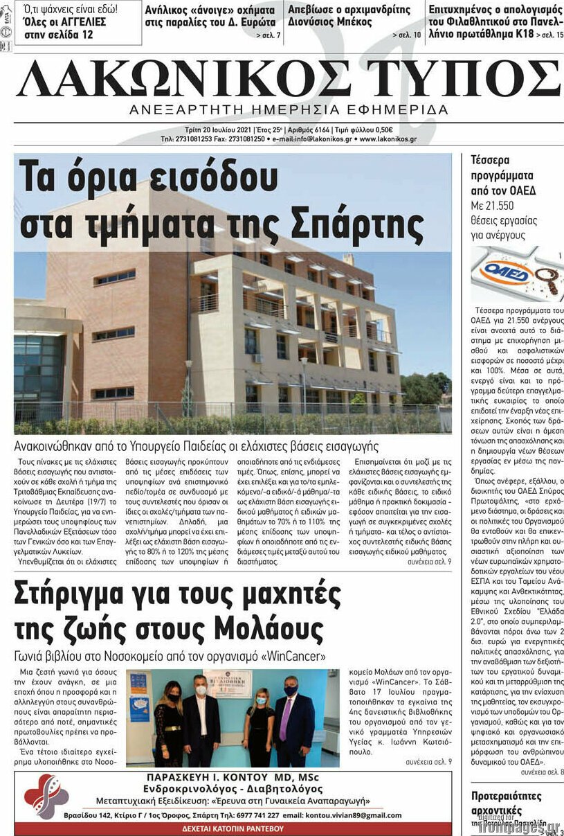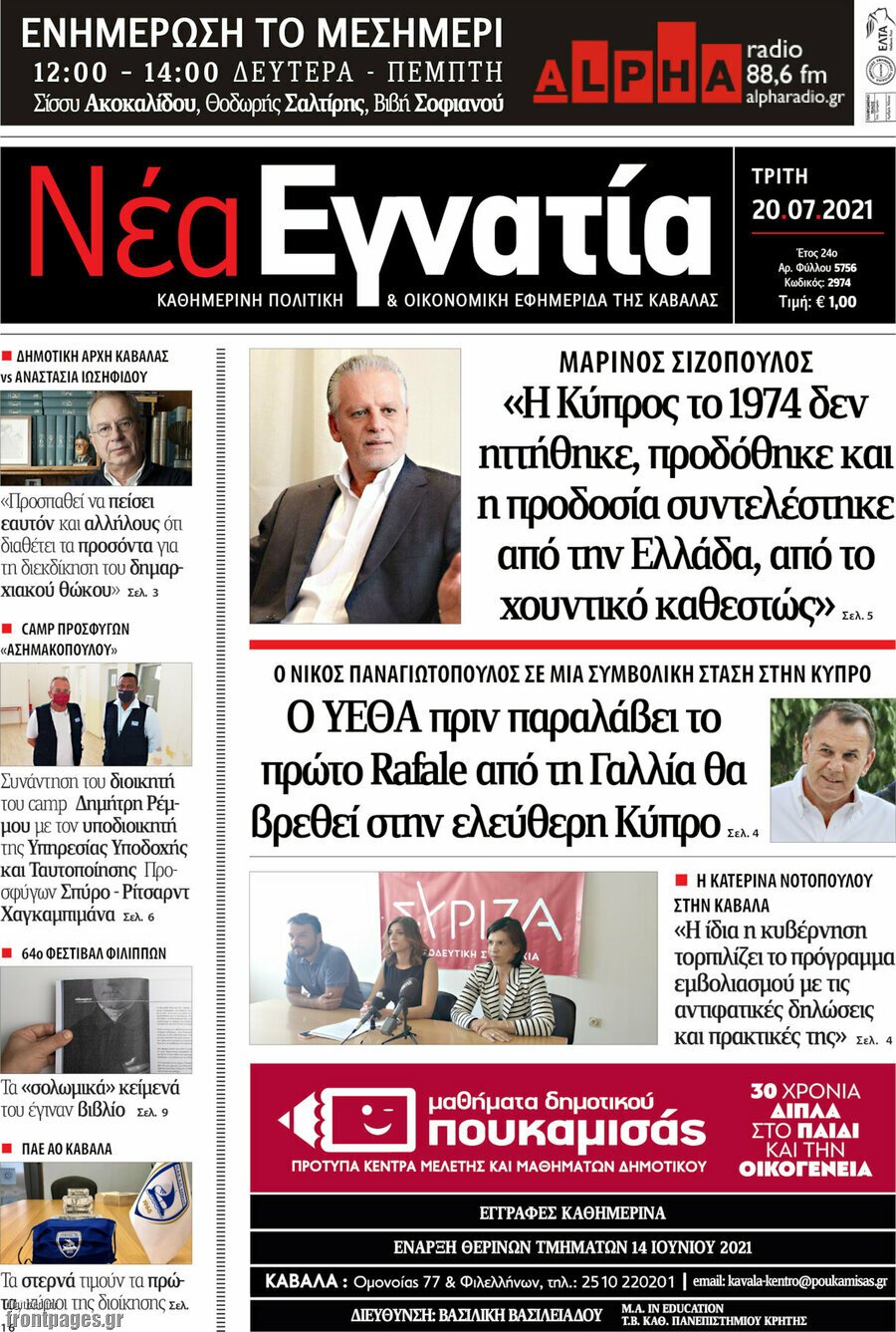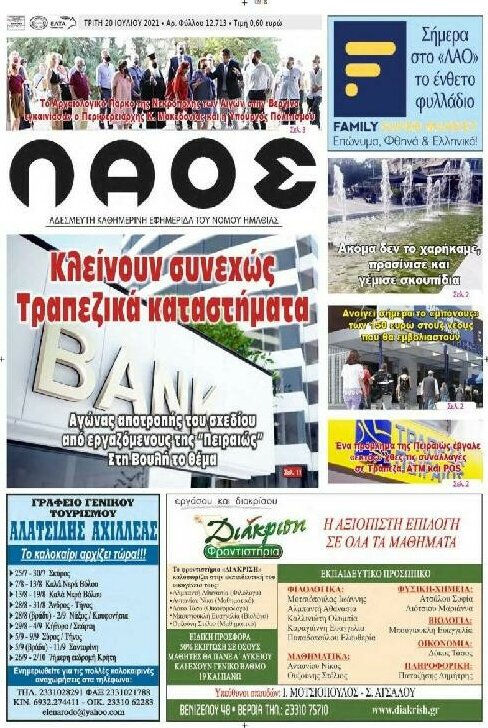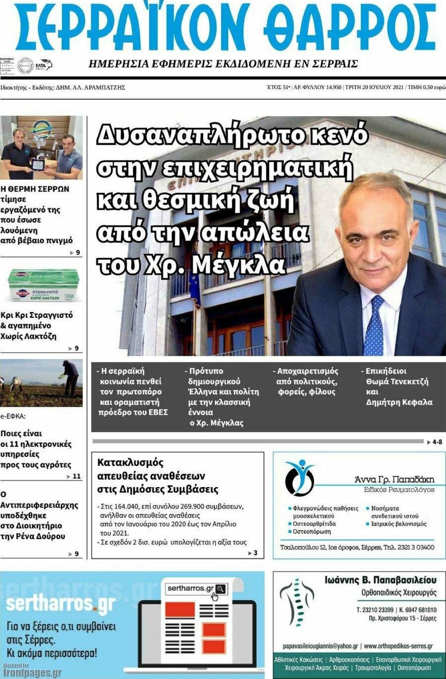 Διαβάστε τα πρωτοσέλιδα των σημερινών τοπικών εφημερίδων