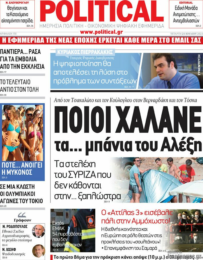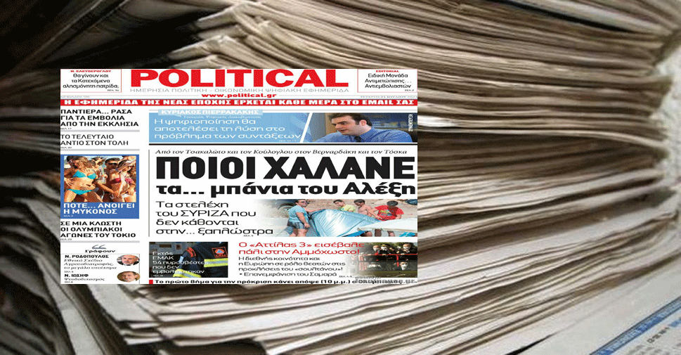 ΠΟΙΟΙ ΧΑΛΑΝΕ τα… μπάνια του Αλέξη -Διαβάστε σήμερα στην εφημερίδα Political