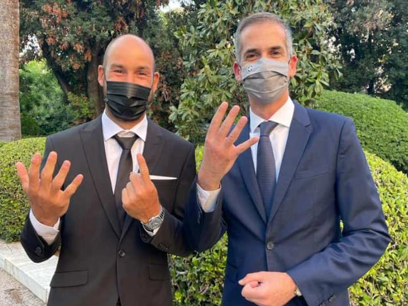 Το θέμα συζήτησής τους; Τα παιδιά τους, φυσικά, με τον δήμαρχο Αθηναίων να σχολιάζει στο λογαριασμό του στο Facebook πως ακόμη και σε αυτό κερδίζει ο πρώην αρχηγός του Ολυμπιακού.