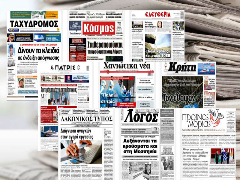 Διαβάστε τα πρωτοσέλιδα των σημερινών τοπικών εφημερίδων