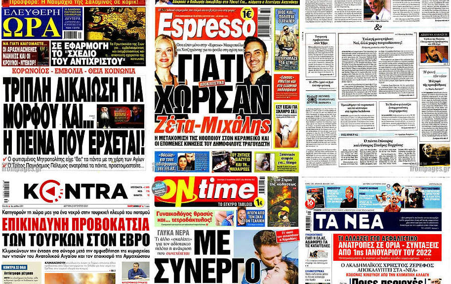 Δείτε τα πρωτοσέλιδα των σημερινών εφημερίδων