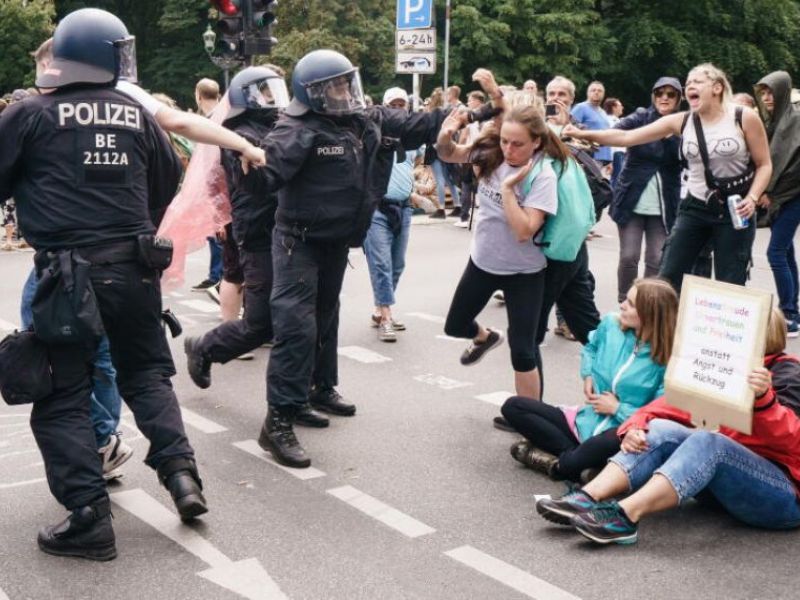 Αστυνομικοί συγκρούστηκαν με διαδηλωτές σήμερα στο Βερολίνο, όπου χιλιάδες άνθρωποι πραγματοποίησαν πορεία, φωνάζοντας συνθήματα και κρατώντας πανό κατά των περιορισμών που συνδέονται με την πανδημία της Covid-19.
