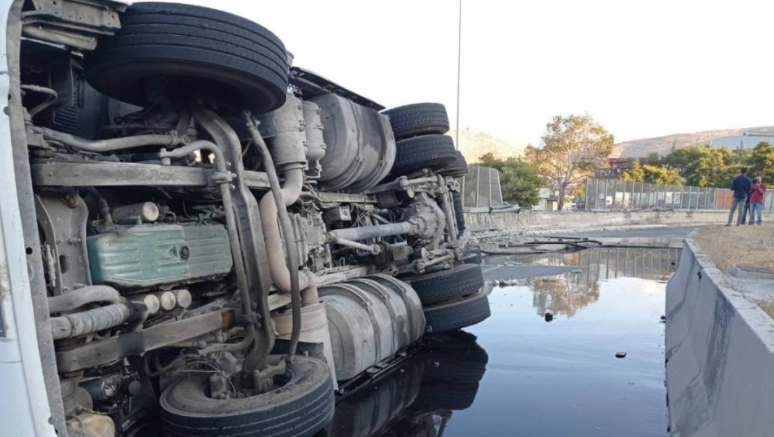 Σήμερα στις 5:50 τα ξημερώματα βυτιοφόρο όχημα μεταφοράς 25 τόνων ασφαλτικού υλικού κάτω από αδιευκρίνιστες μέχρι στιγμής συνθήκες, έχασε τον έλεγχο της πορείας του με αποτέλεσμα να ανατραπεί, στην περιφερειακή της Δραπετσώνας, με κατεύθυνση προς Πειραιά ακριβώς μετά την έξοδο του πρώτου τούνελ.