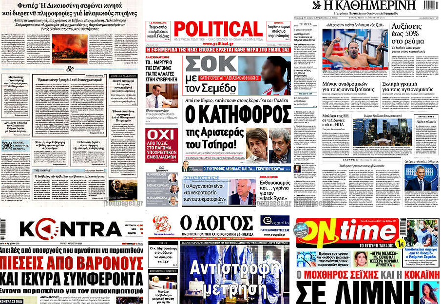 Κοινοποίηση Facebook Twitter LinkedIn Pinterest Email Copy Link Δείτε τα πρωτοσέλιδα των σημερινών εφημερίδων Πρωτοσέλιδα