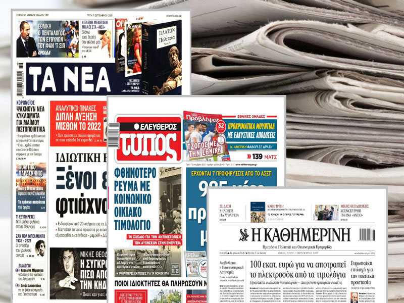 Κοινοποίηση Facebook Twitter LinkedIn Pinterest Email Copy Link Διαβάστε τα πρωτοσέλιδα των σημερινών εφημερίδων Εφημερίδες|Πρωτοσέλιδα